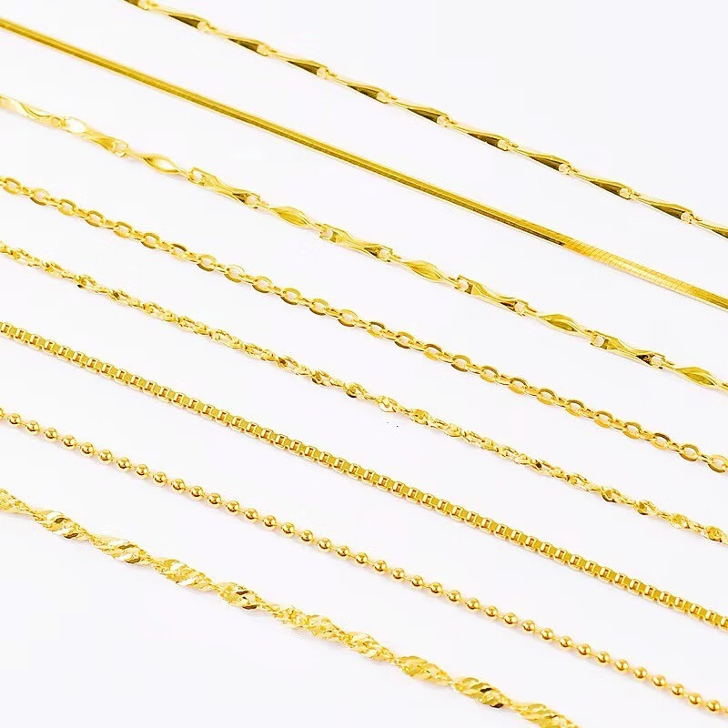 Junpo 18Kg gold necklace for women, gold versatile plain chain, O-shaped chain, platinum clavicle chain, gypsophila Chopard chain, colorful gold chain for women, gold-colored O-shaped chain, 45cm, real 18K gold, supports offline inspection