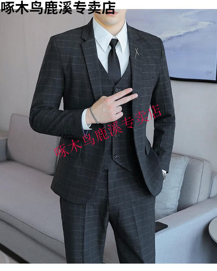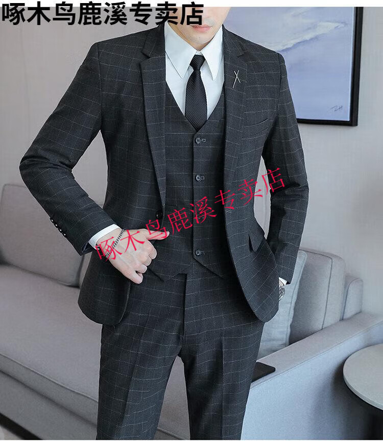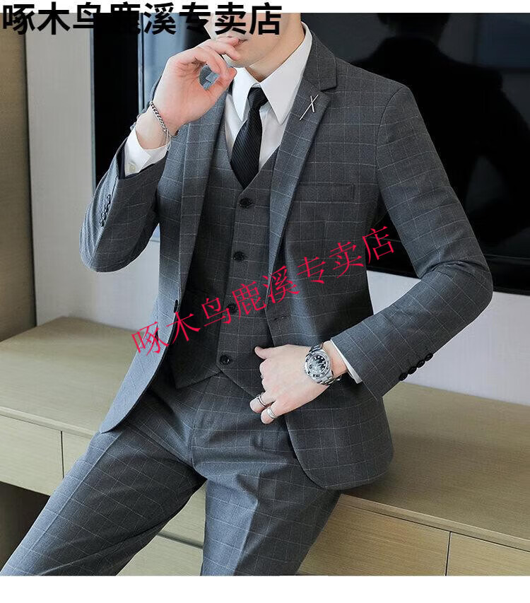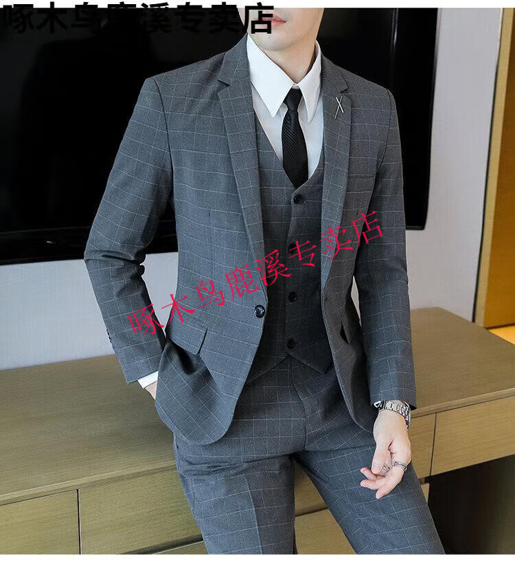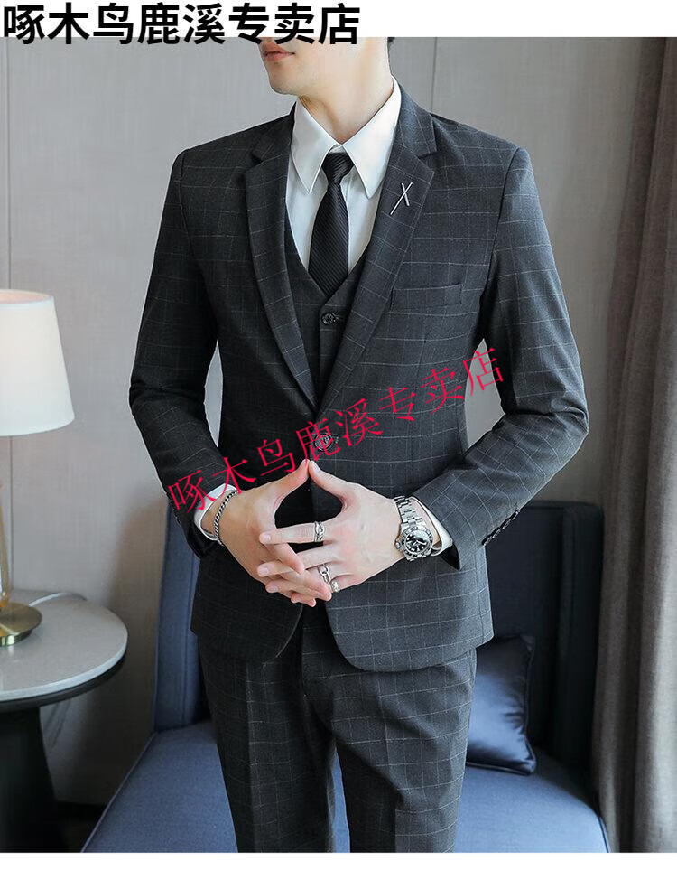 Woodpecker (TUCANO) suit men's Korean style business three-piece suit formal fit groomsmen dress plaid casual suit jacket 1236 light gray XL