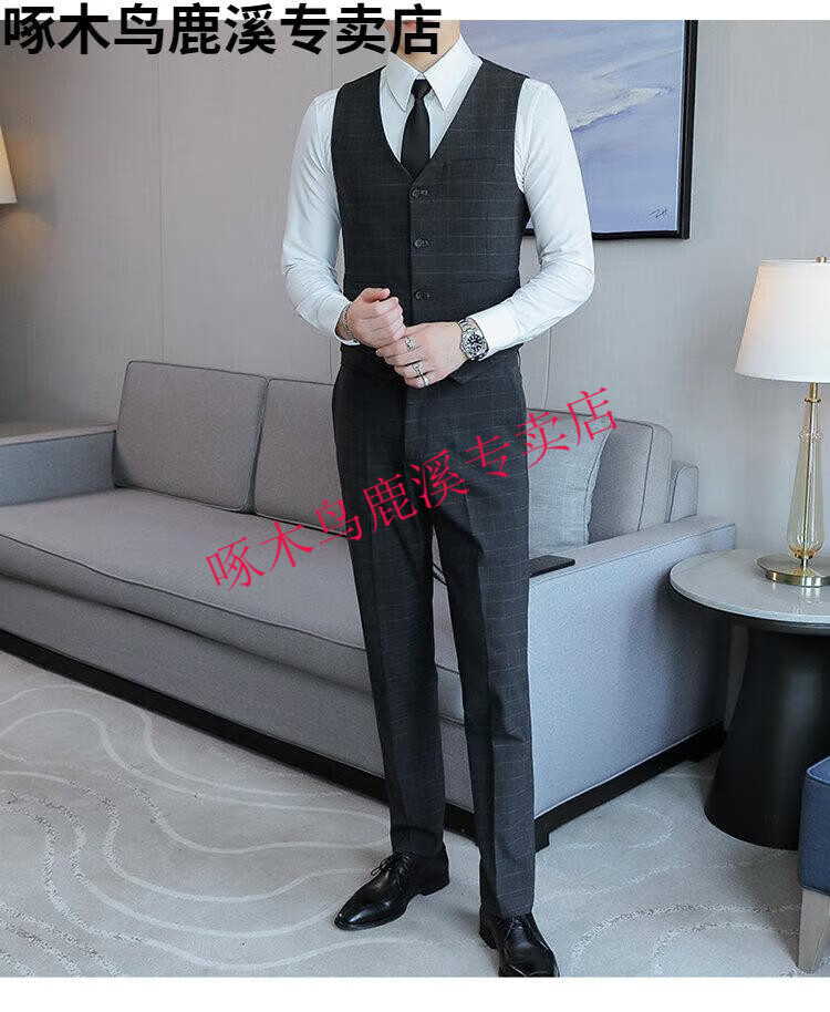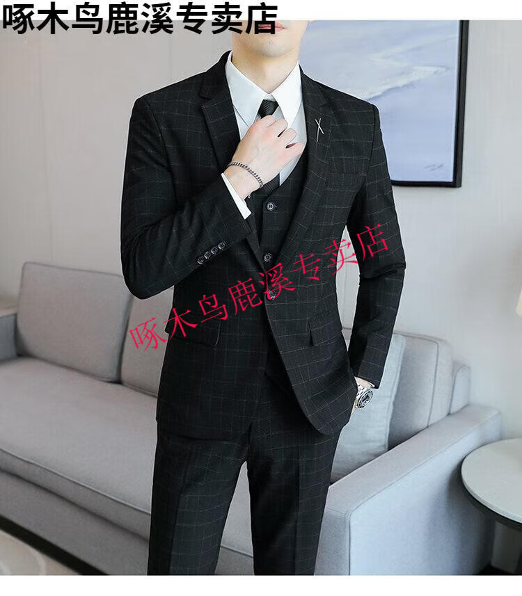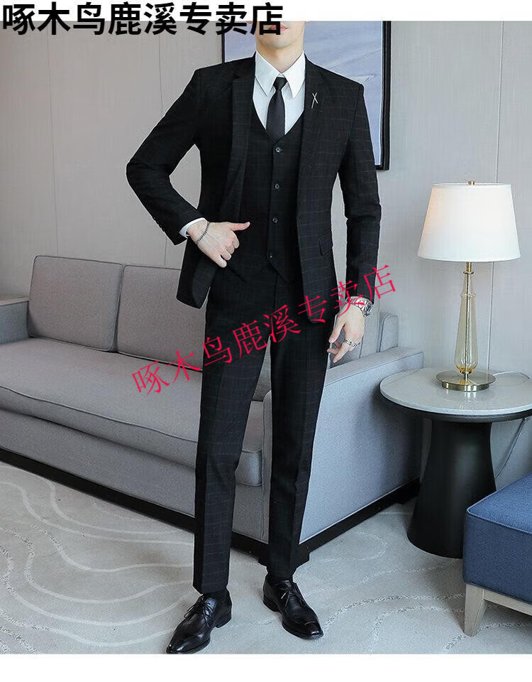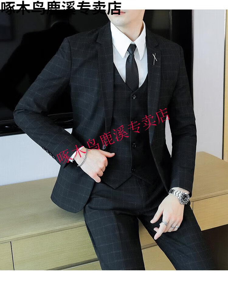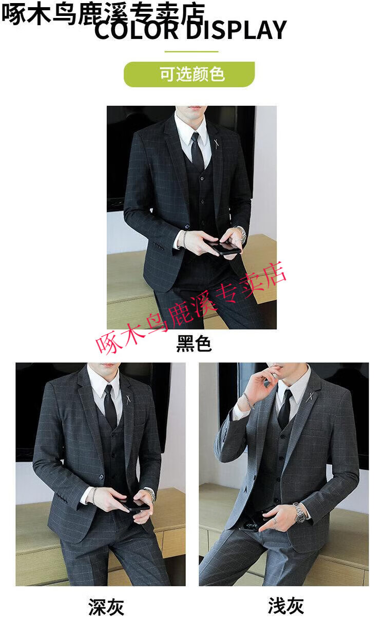 Woodpecker (TUCANO) suit men's Korean style business three-piece suit formal fit groomsmen dress plaid casual suit jacket 1236 light gray XL