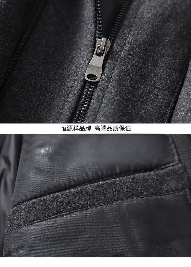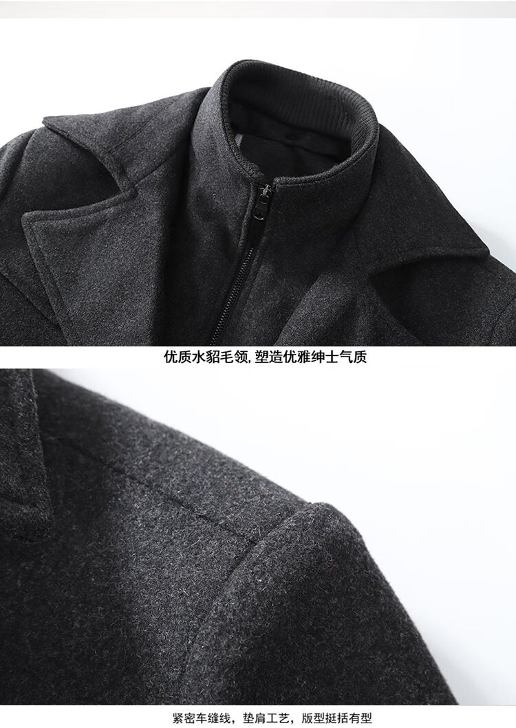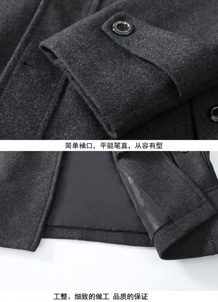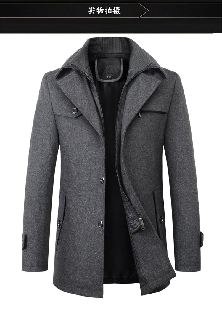 ROMON men's mid-length woolen coat autumn and winter double collar cotton thickened coat young and middle-aged business casual men's dark gray thickened L (recommended 115-130Jin Jin equals 0.5 kg)