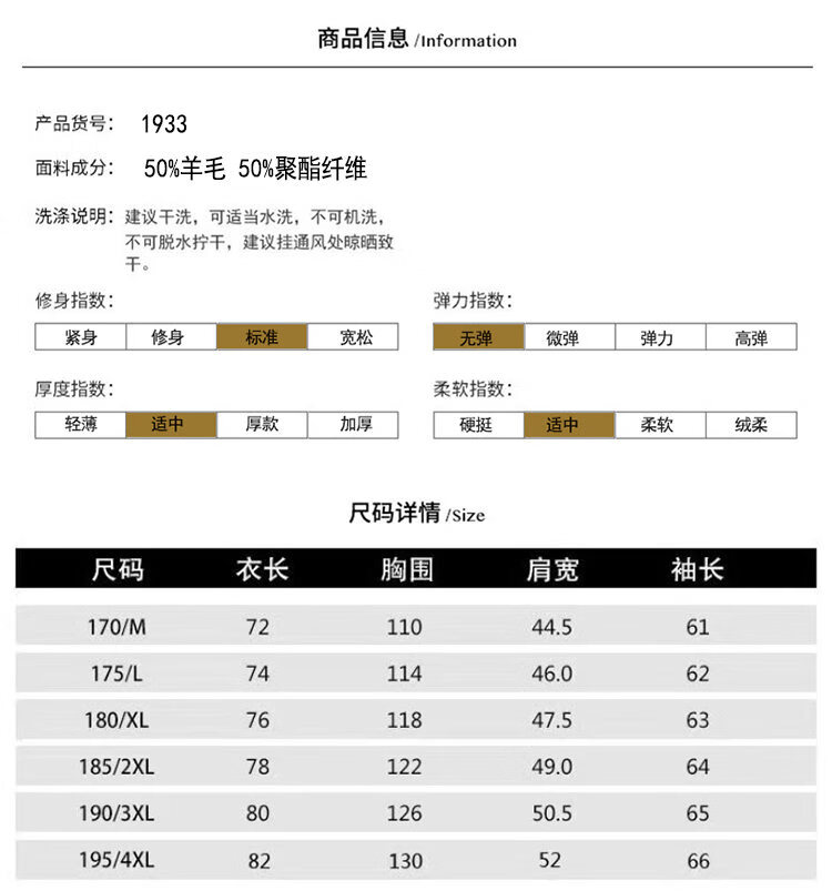 China (cm) 165 / 88-90 170 / 96-98 175 / 108-110 180 / 118-122 185 / 126-130
