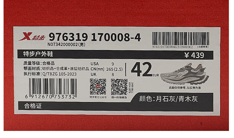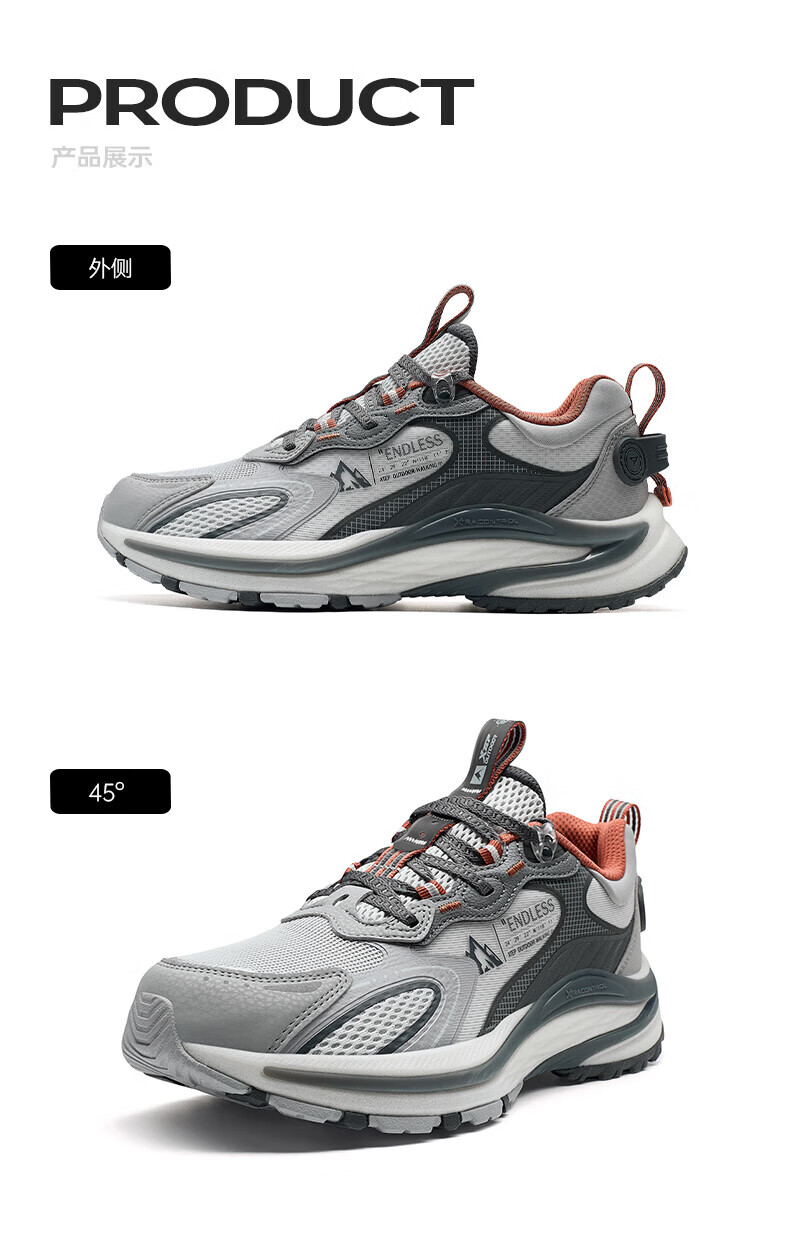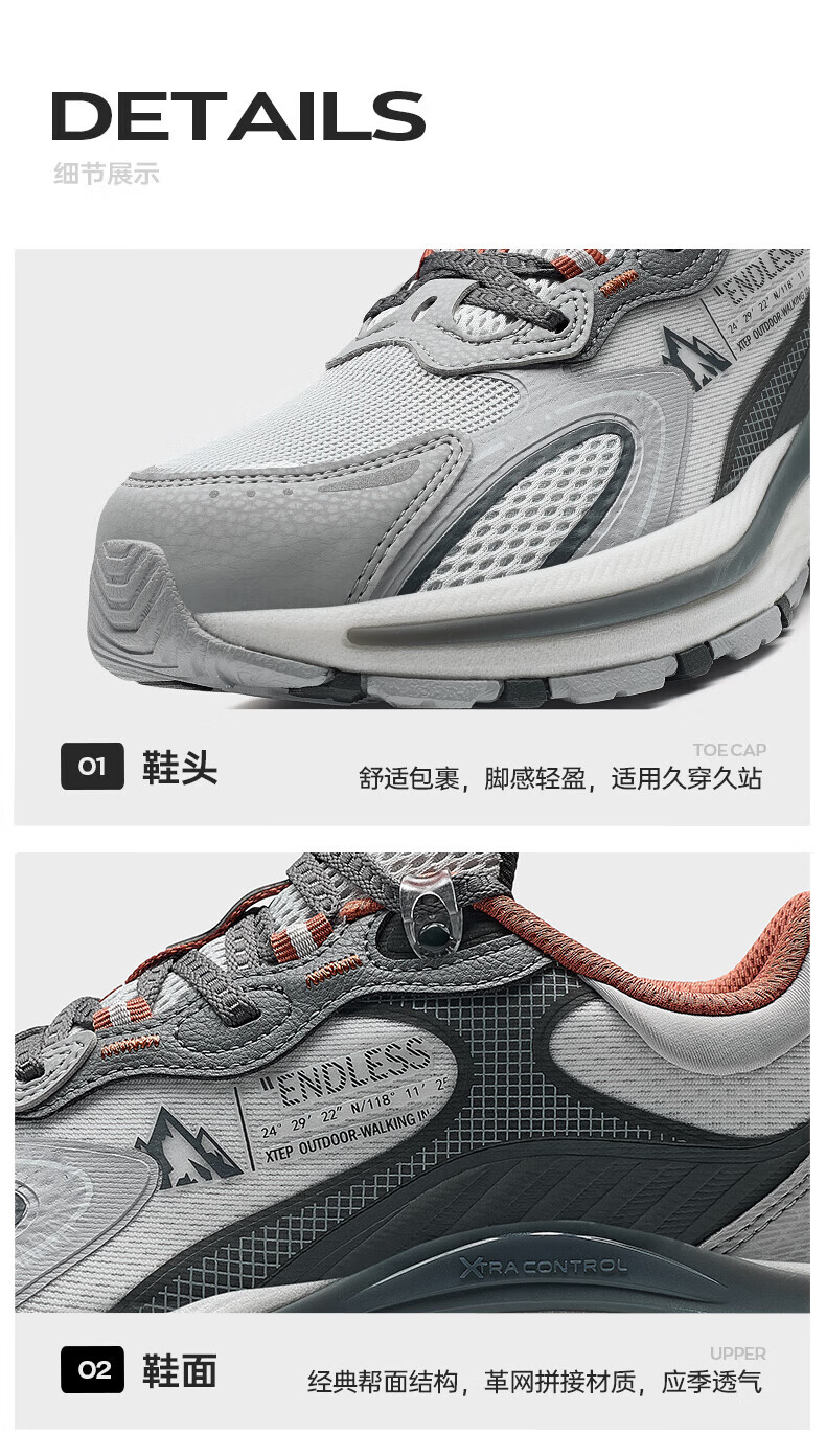 XTEP store same style Chuangshi 3.0 outdoor casual shoes for men 24 new couple shoes for women Moon Gray/Aoki Gray - Men 41