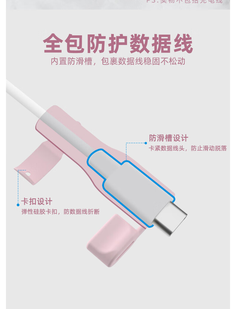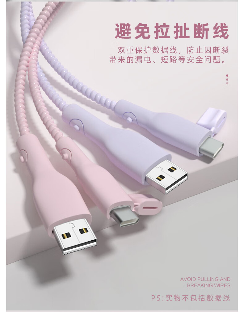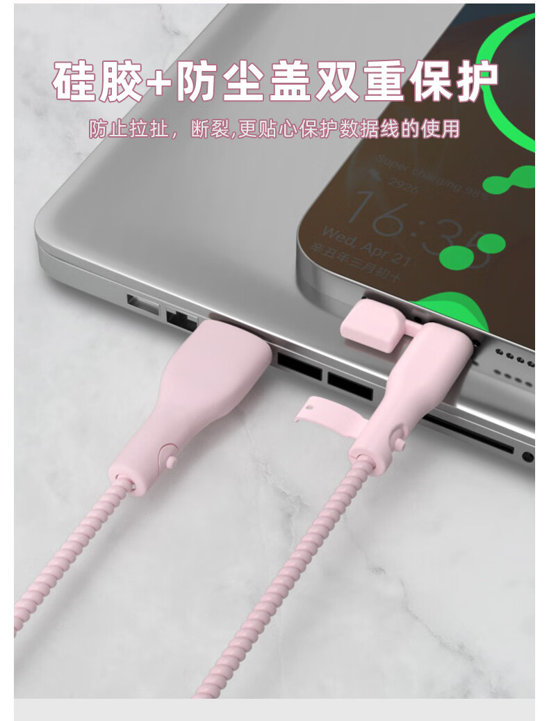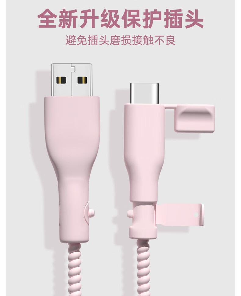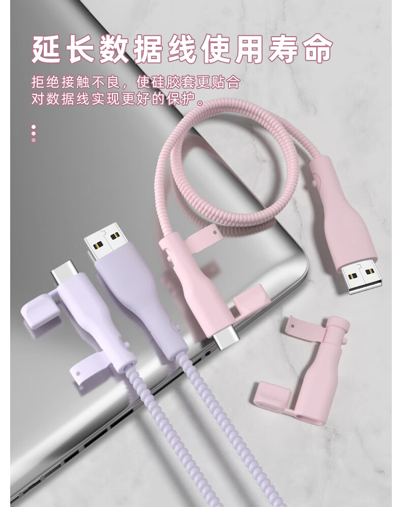 HAPPYMAKER data cable protective cover, universal for Android and Apple phones, Huawei, Xiaomi, vivo OnePlus ACEpro3 all-inclusive data cable, anti-breakage winding rope silicone mobile phone case, Android data cable protective sleeve at both ends, light pink, with dustproof plug