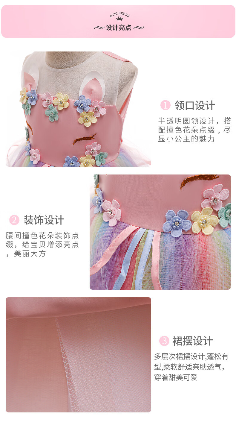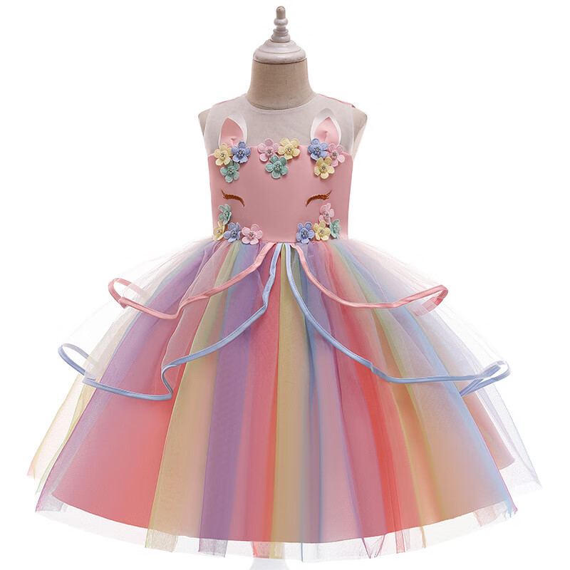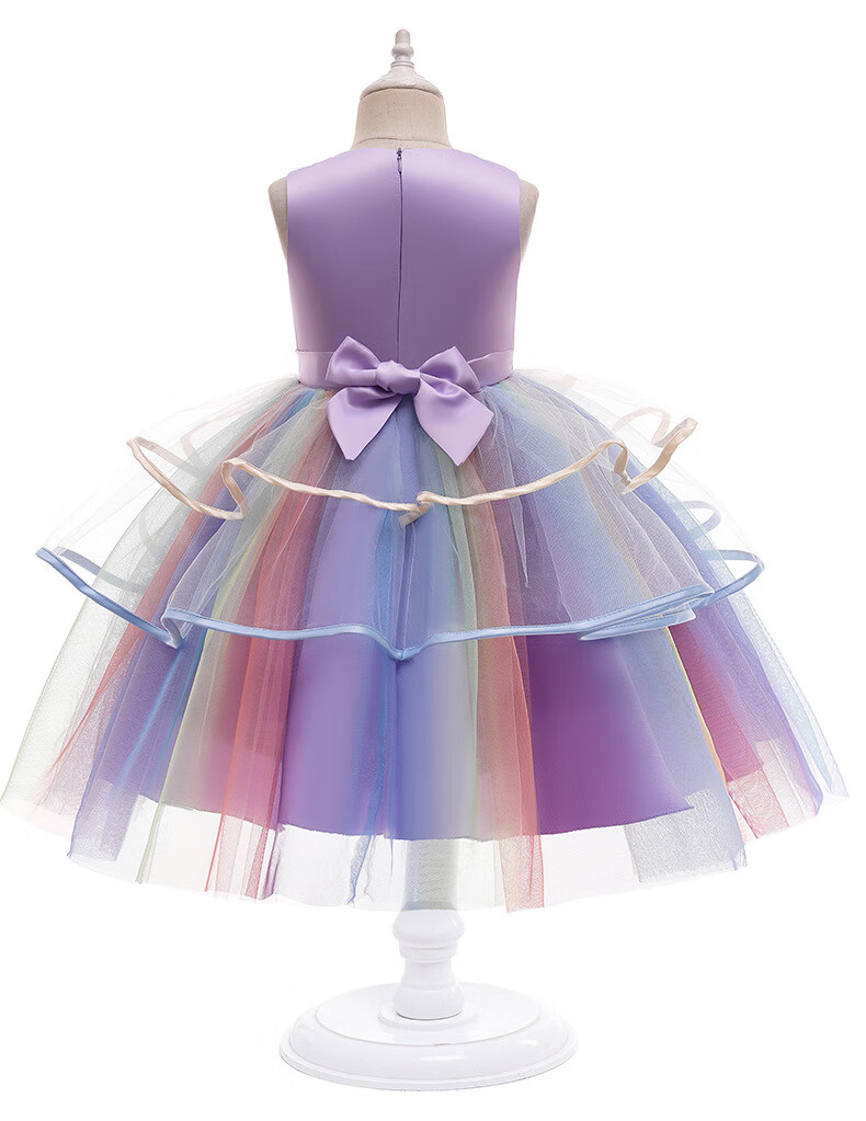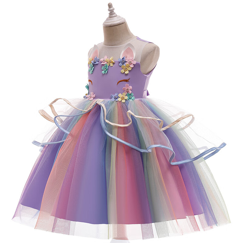 Xibai My Little Pony Clothes Girls Princess Dress Colorful Tiffany Dress Twilight Children's Halloween Costume Purple Dress + Wings + Headband + Wig 130cm