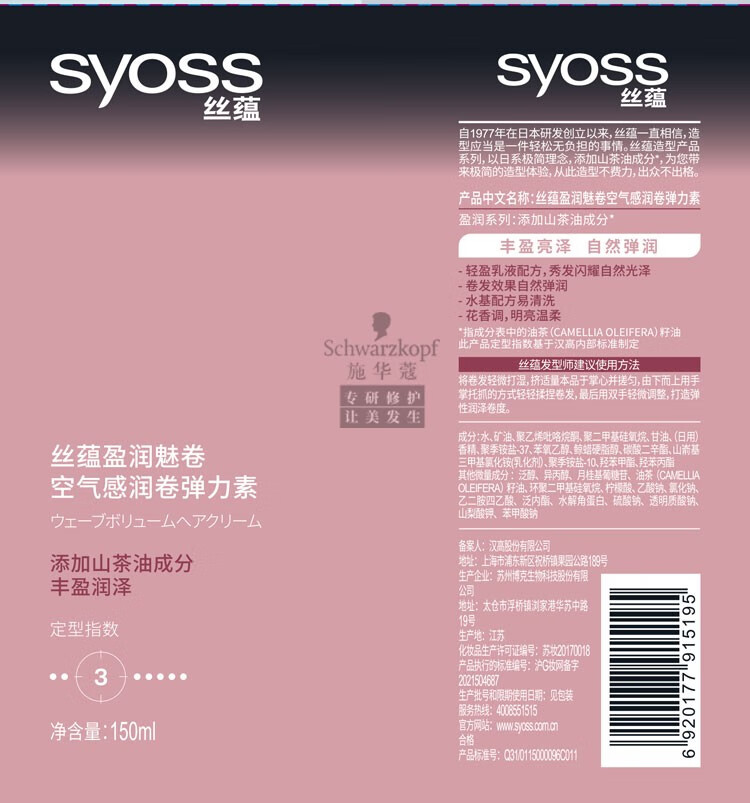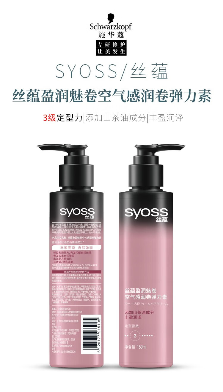 Silk Yun Ying Run Charming Volume Airy Volume Elastin 150ML Styling Curly Hair Essential Oil Elasticity and Long-lasting Moisturizing Essence Ying Run Charming Volume Plumping Elastin 150ml