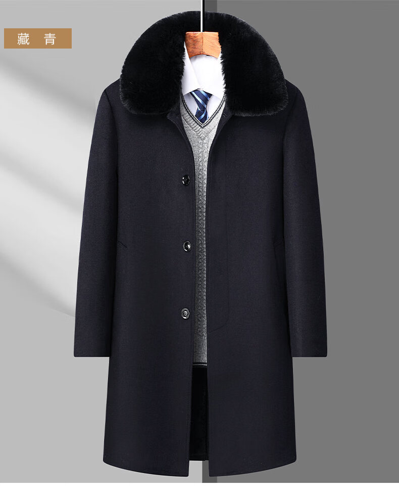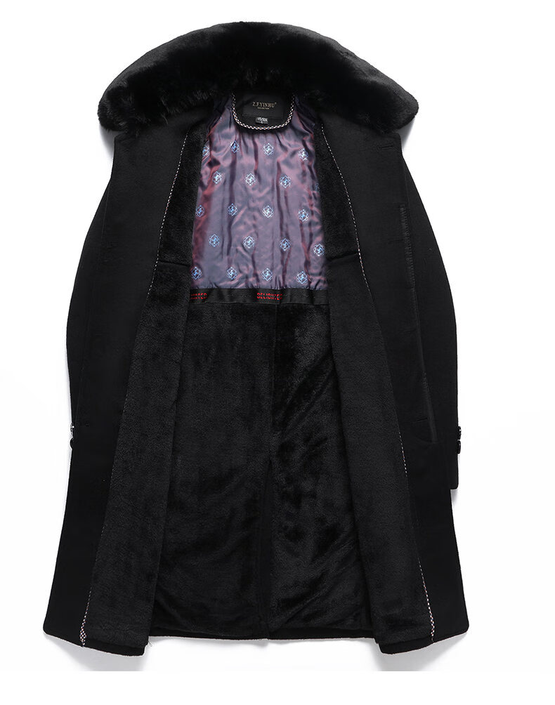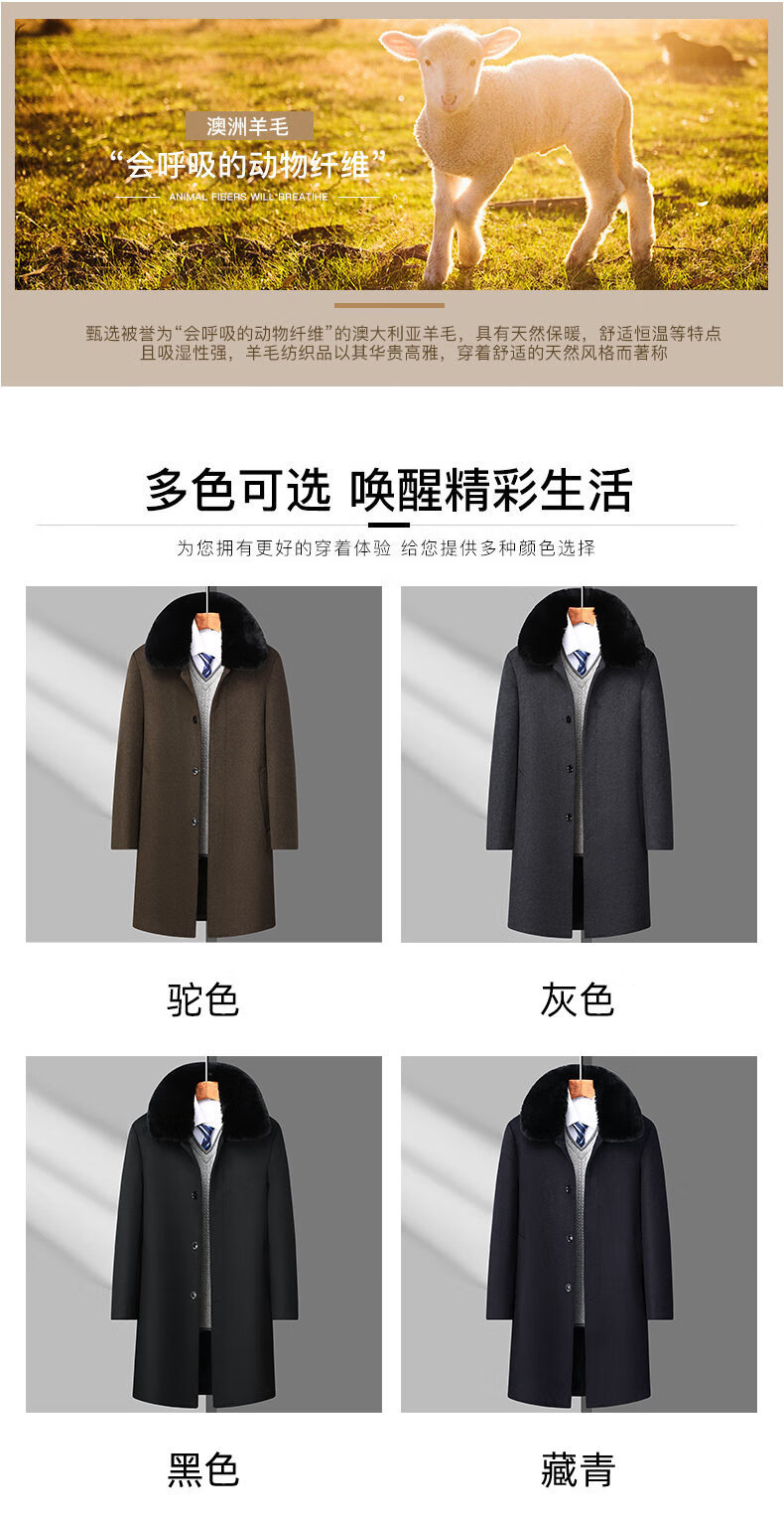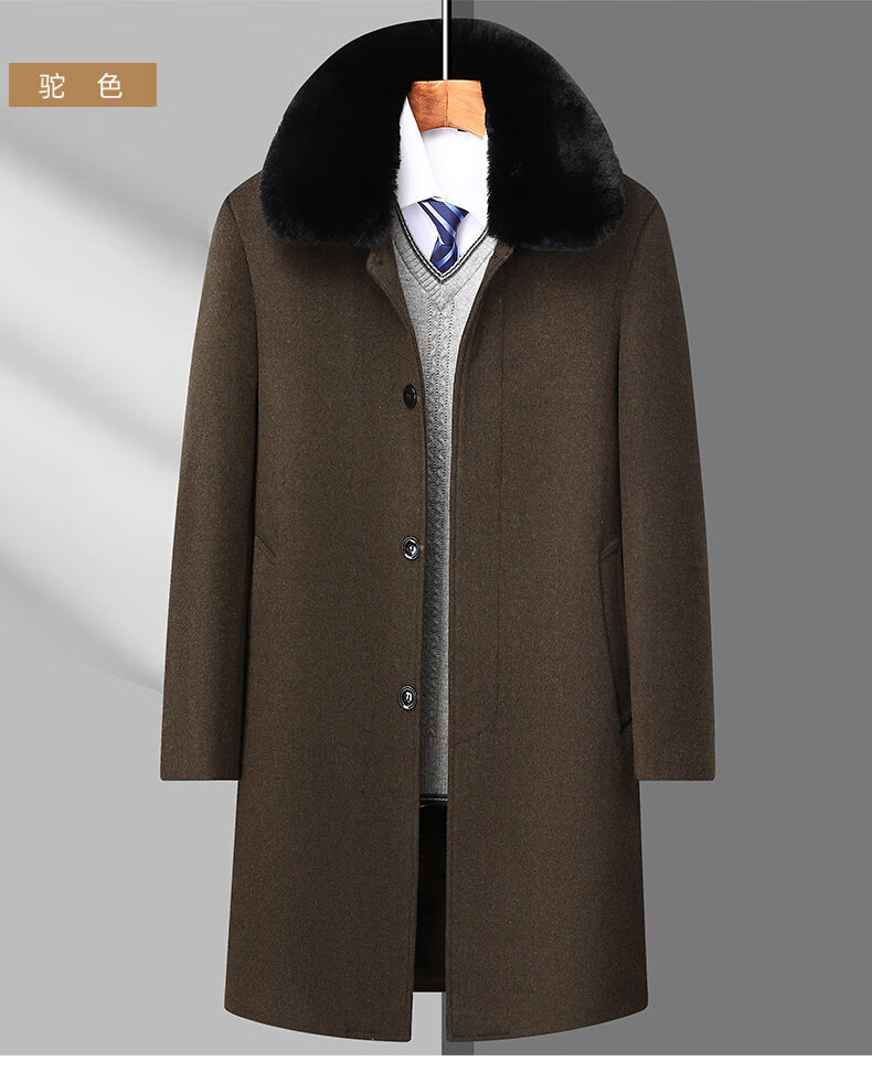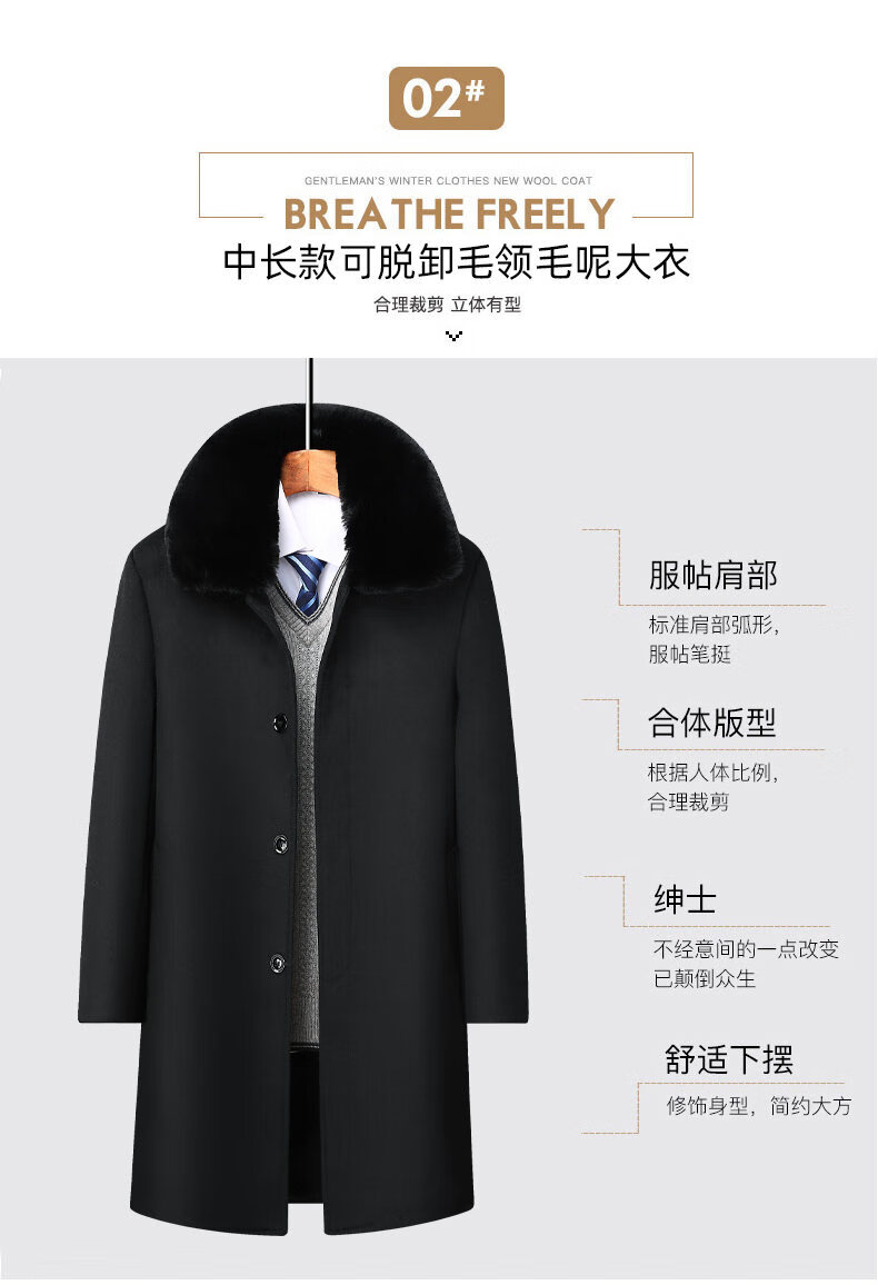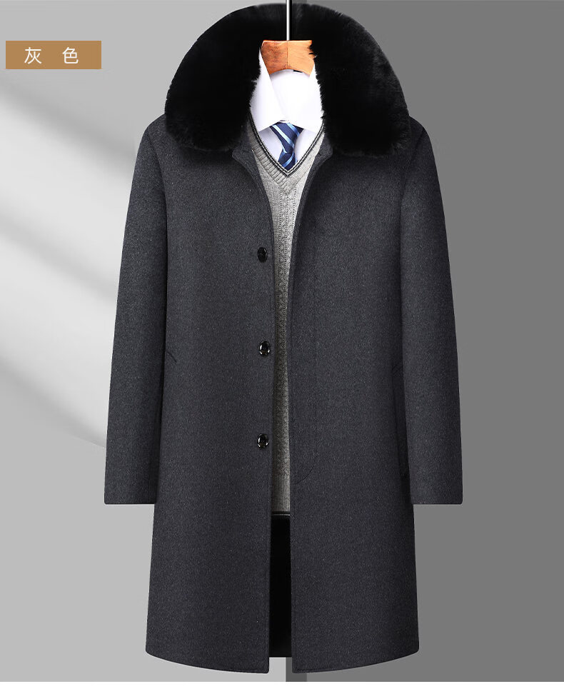 ROMON mid-length woolen coat for middle-aged and elderly men, velvet thickened removable fur collar coat, autumn and winter new style loose men's gray velvet XL 180 (recommended 136-155 Jin Jin equals 0.5 kg)