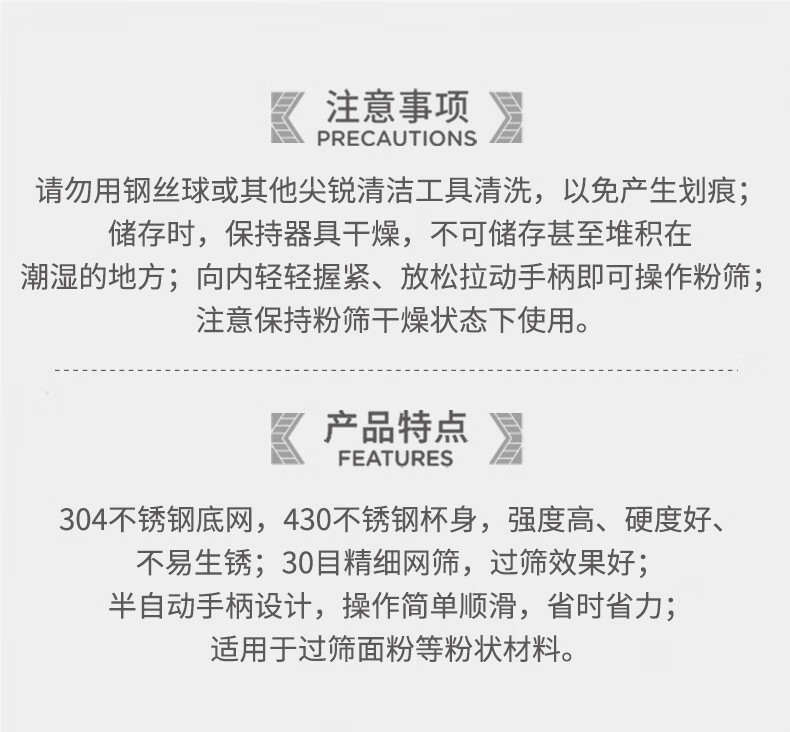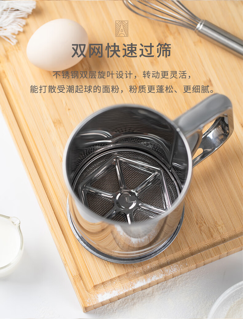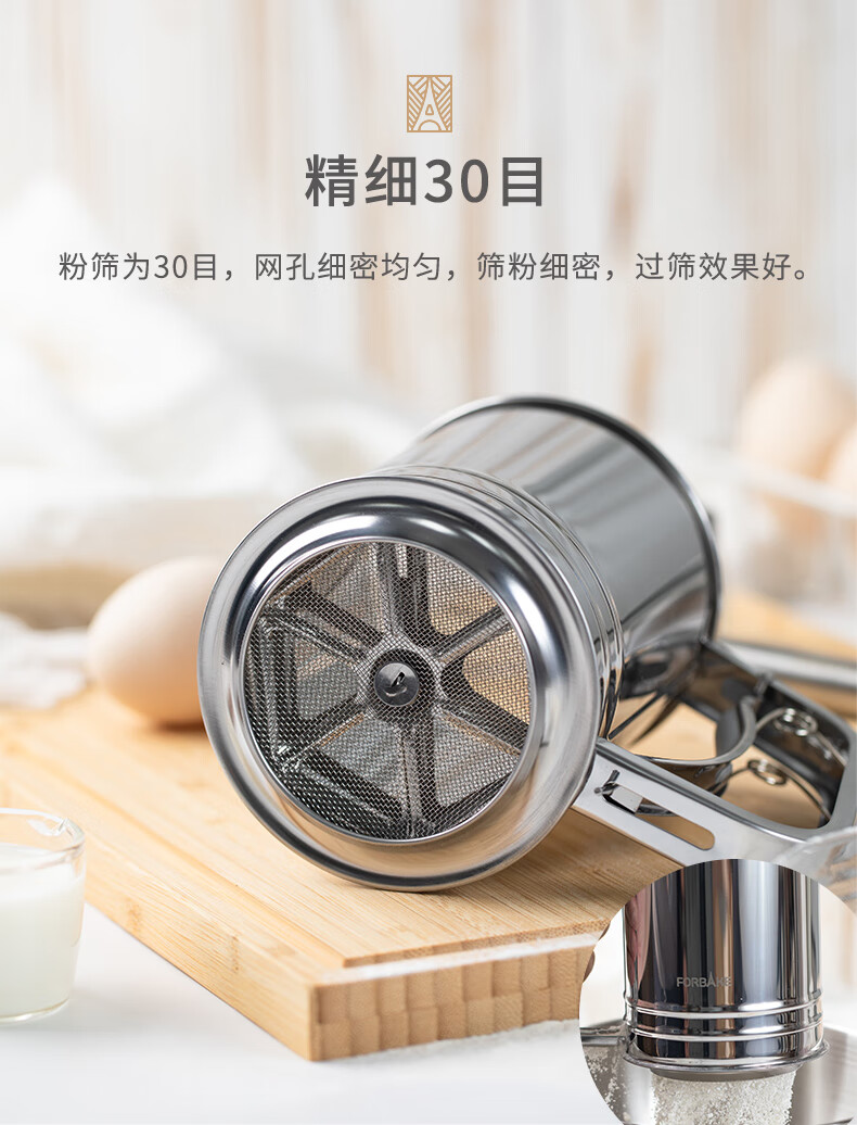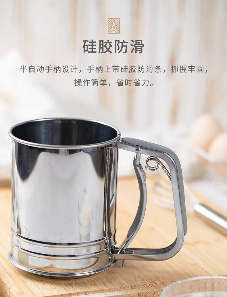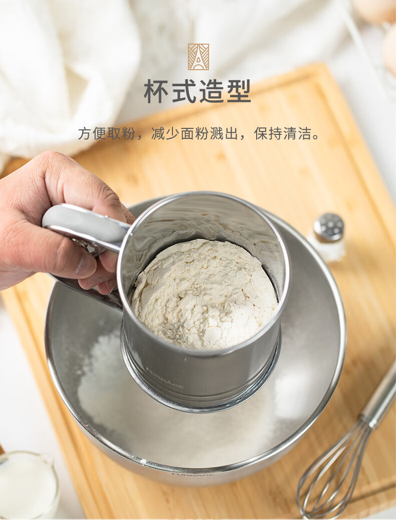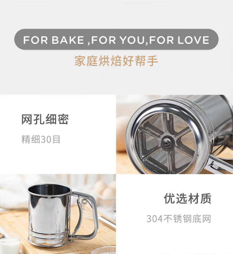 FOR BAKE semi-automatic handheld flour sieve filter mesh baking tool leaking mesh cup type sugar powder spreader double mesh flour sieve FB59612