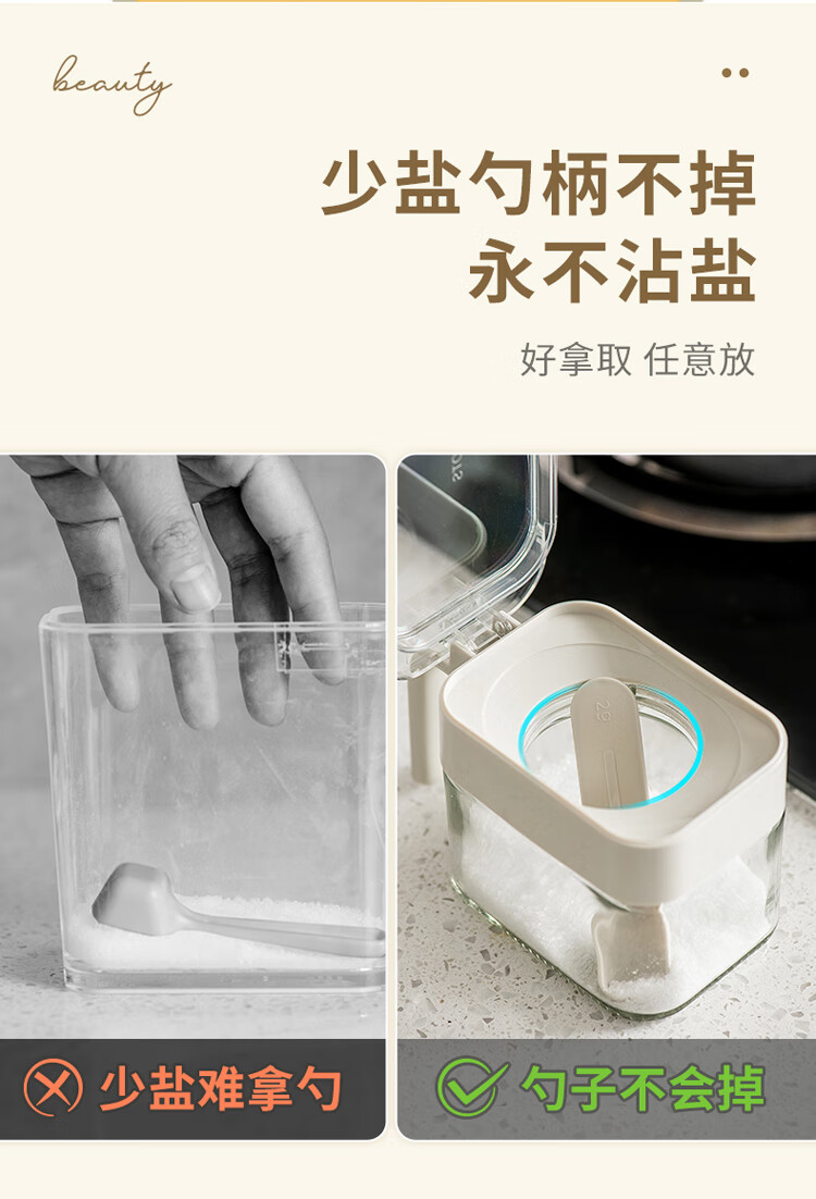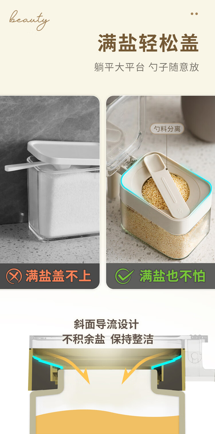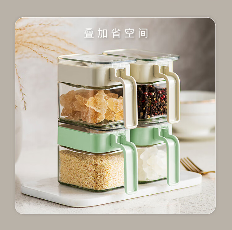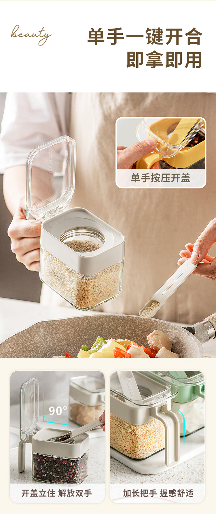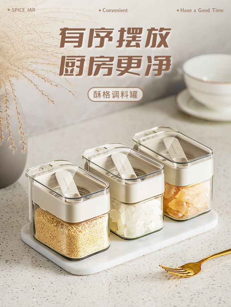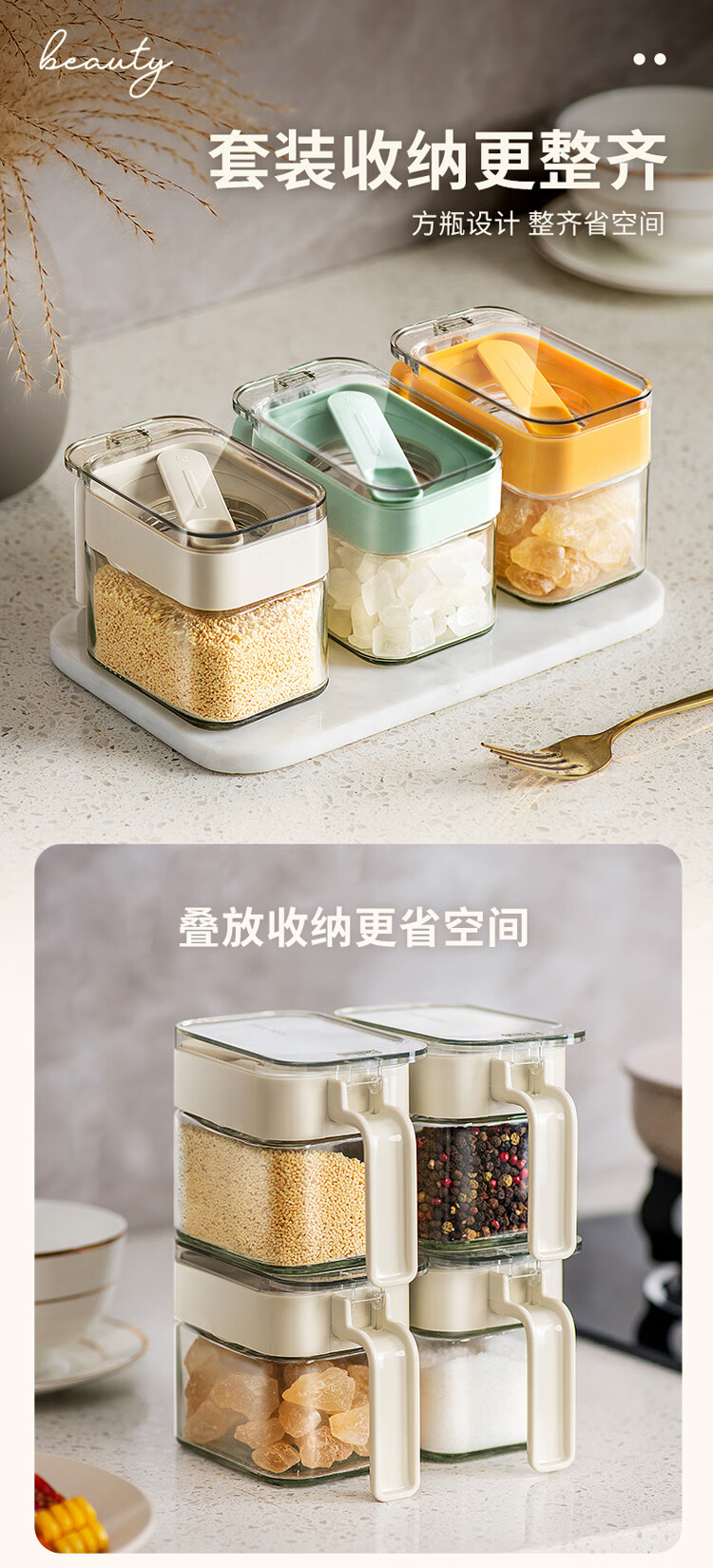Home KATEI STORY Japanese spoon separated seasoning box kitchen household seasoning jar MSG salt jar combination set seasoning storage box white + green + yellow 3-piece set 300ml
