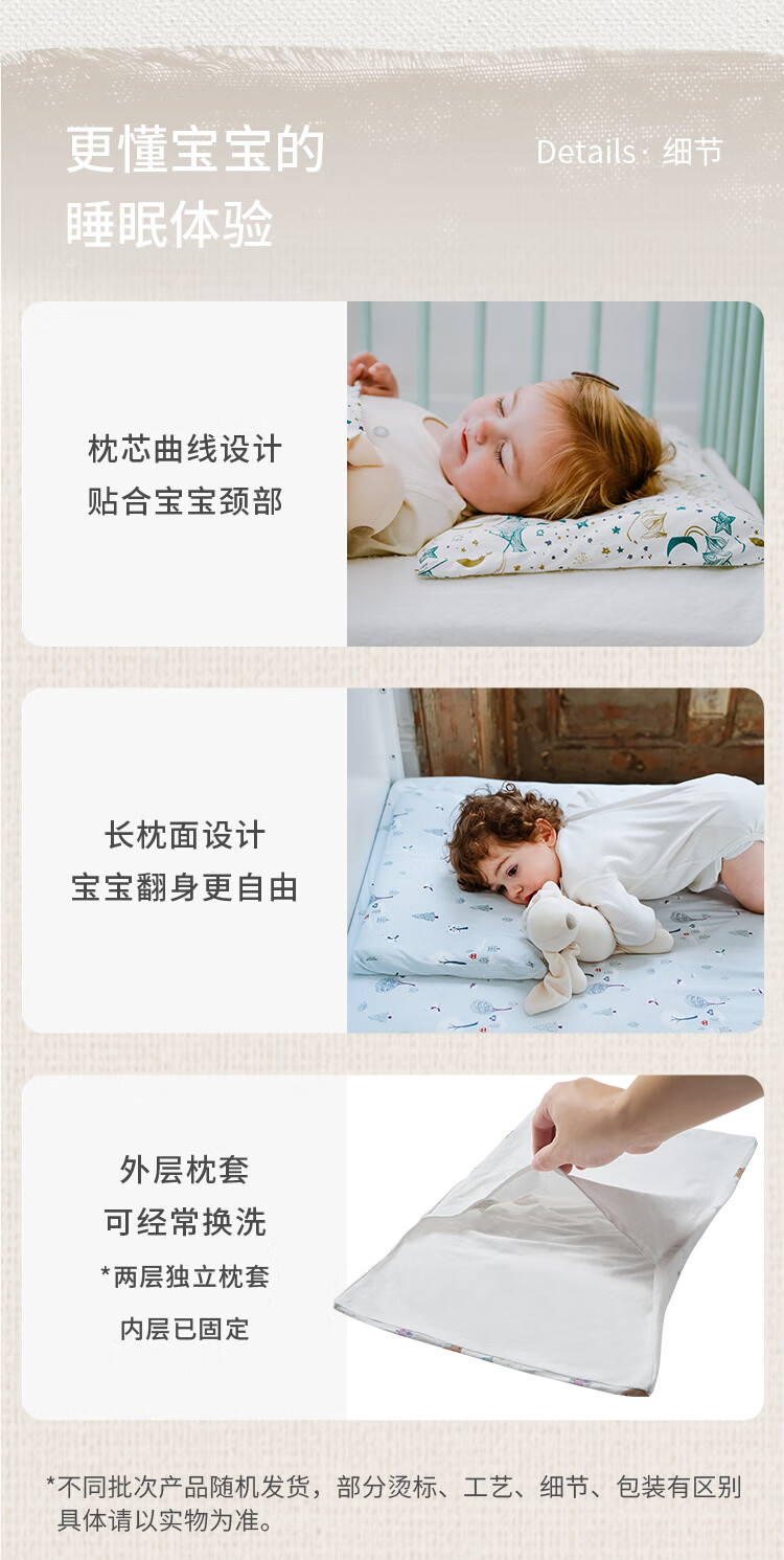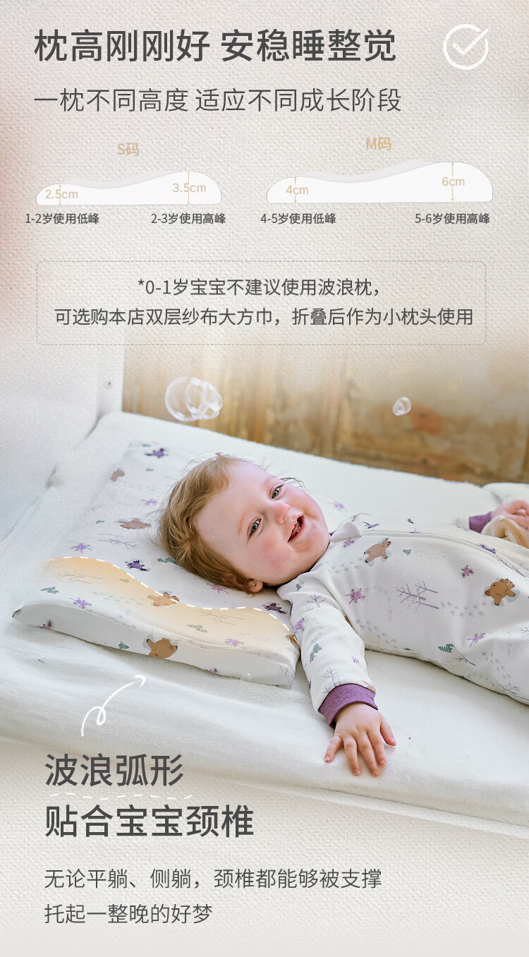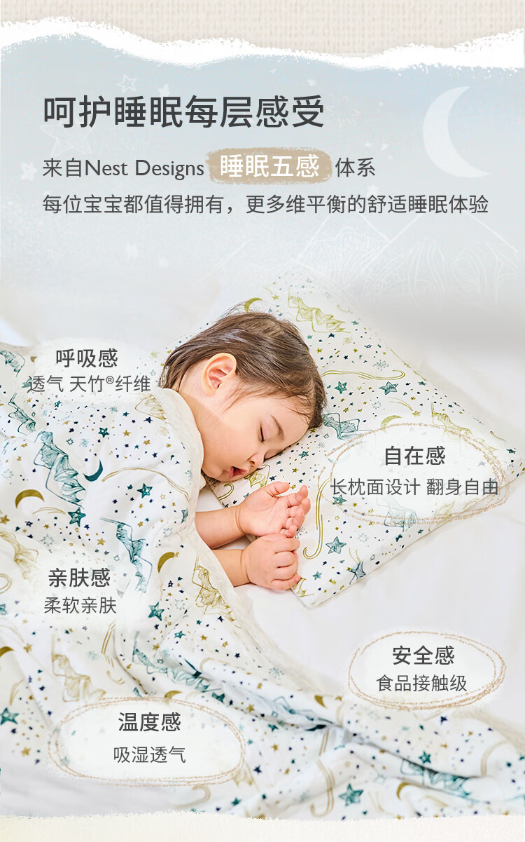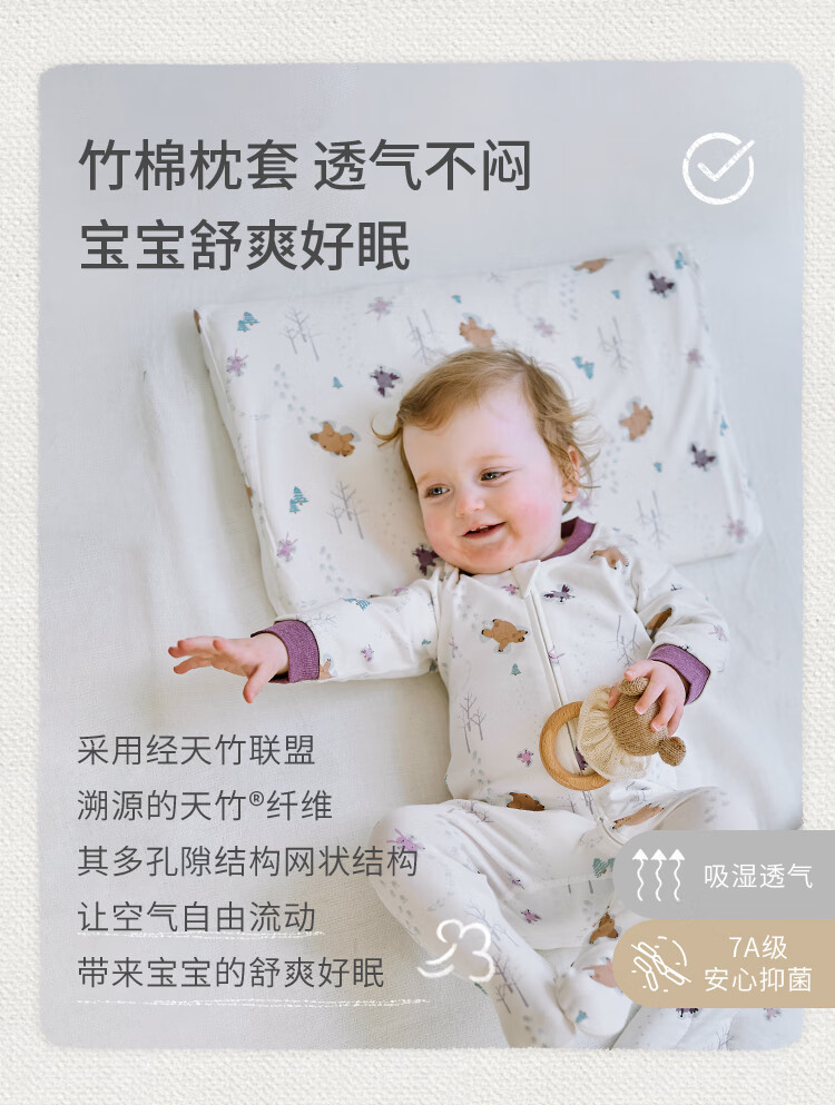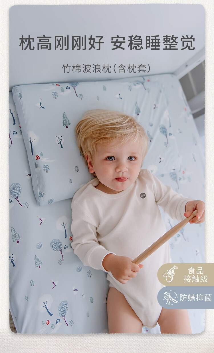 Nest designs children's pillow pillowcase nap pillow wavy neck guard breathable silicone pillow baby bamboo cotton pillowcase 1-3 years old Chuxue (bamboo cotton pillowcase + pillow core)