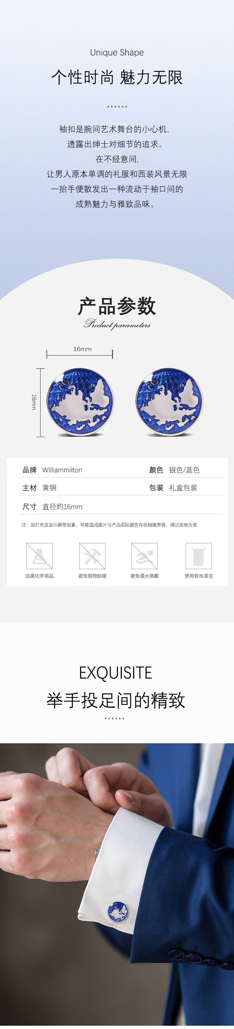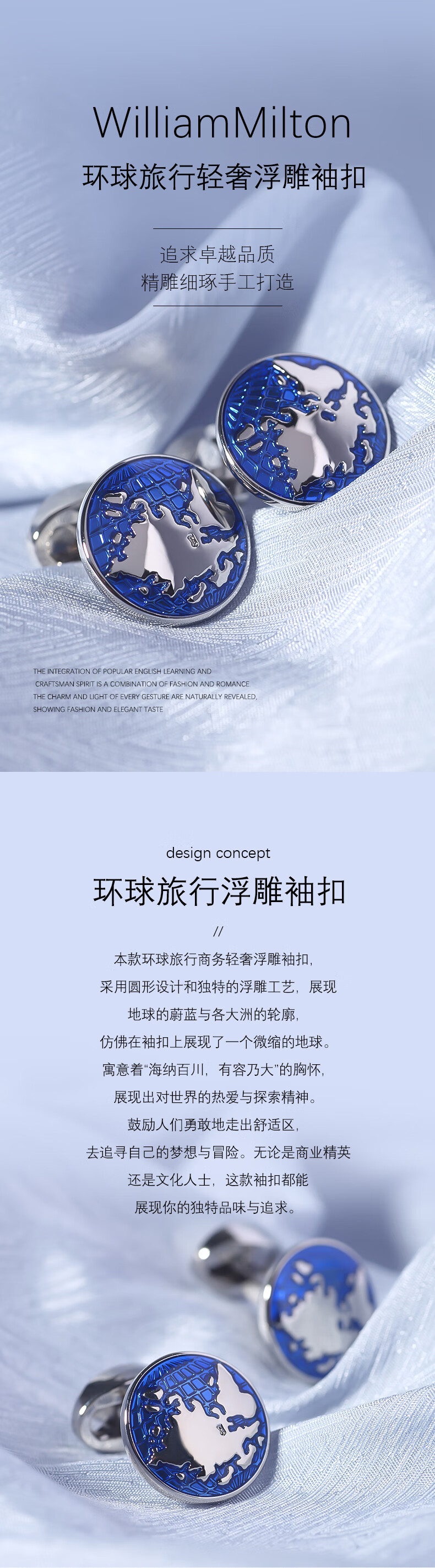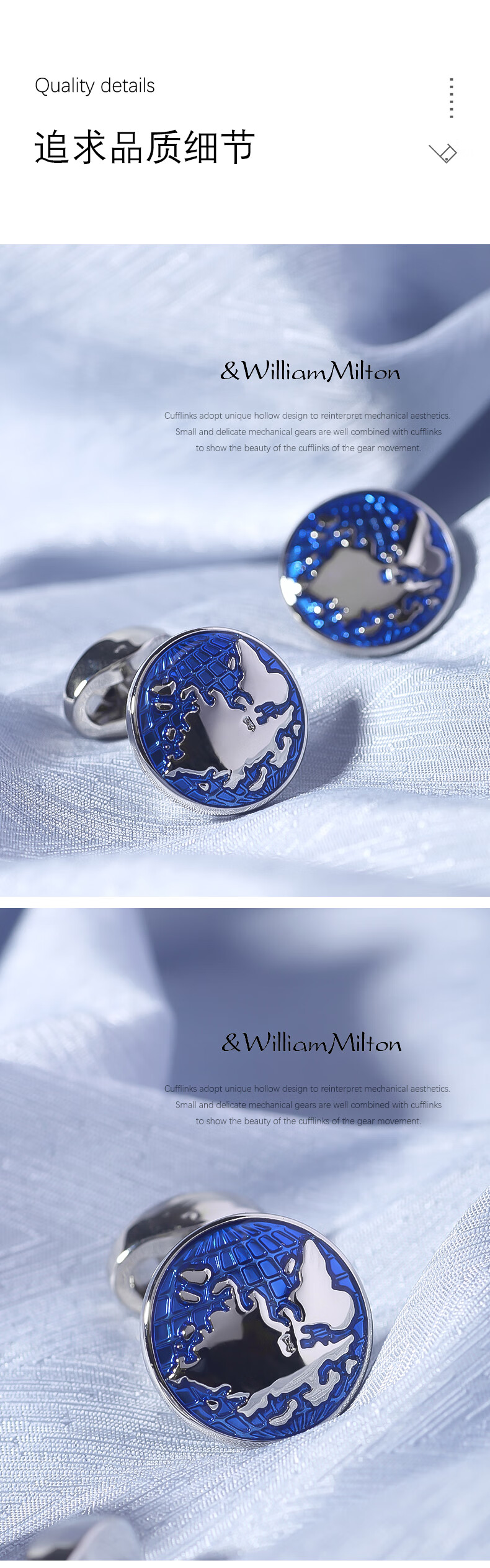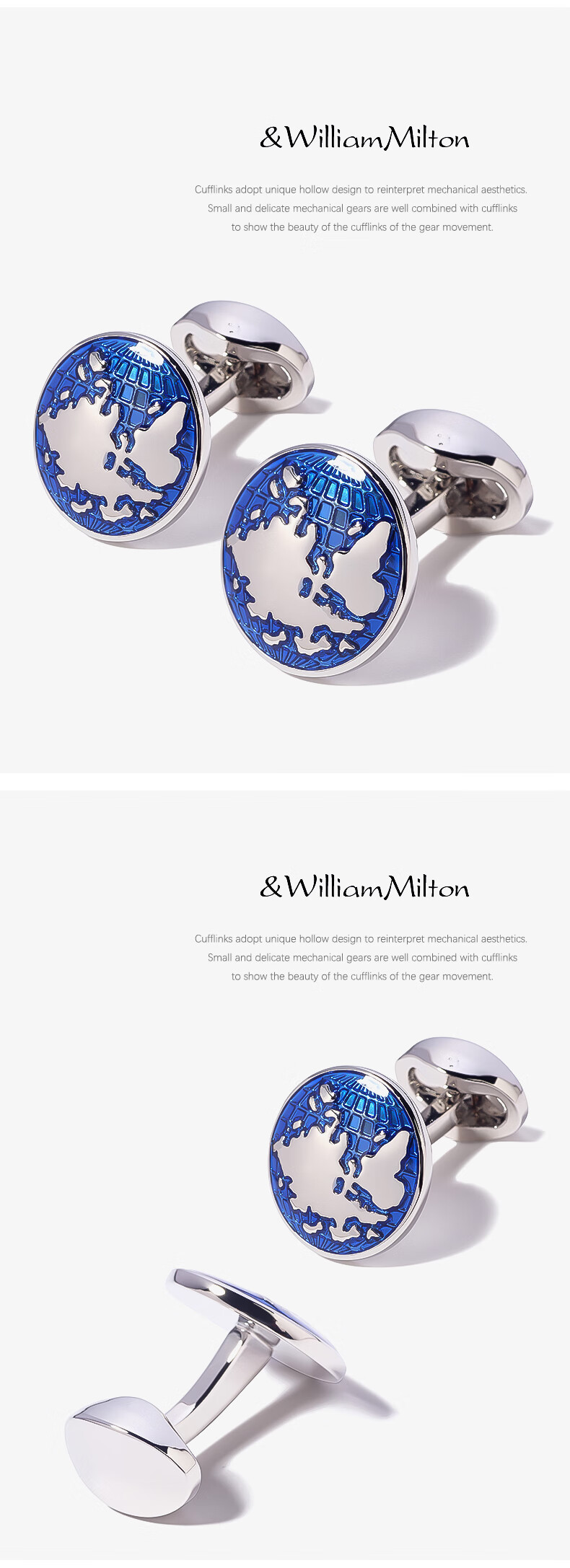 WILLIAM MILTON Limited Edition Global Travel Earth Embossed Cufflinks Men's French Shirt Cuff Pins Light Luxury Gift Customized Gift Box Global Travel