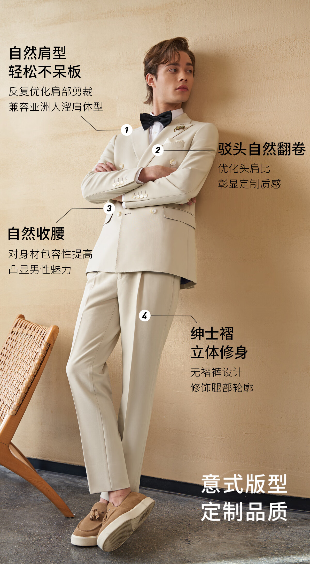 Guillomont wedding gift box suit suit for men double-breasted apricot color groom wedding suit wedding high-end suit 0618 double-breasted apricot color top + pants + vest 46