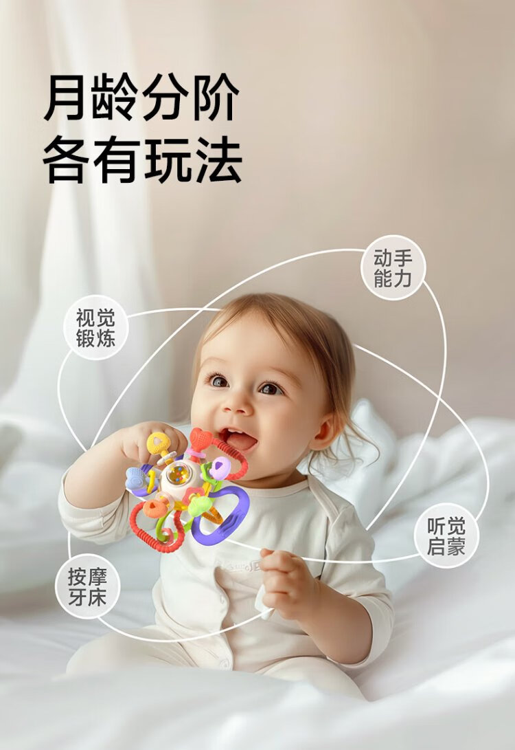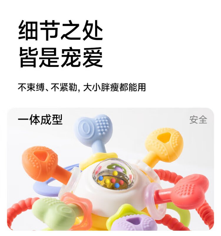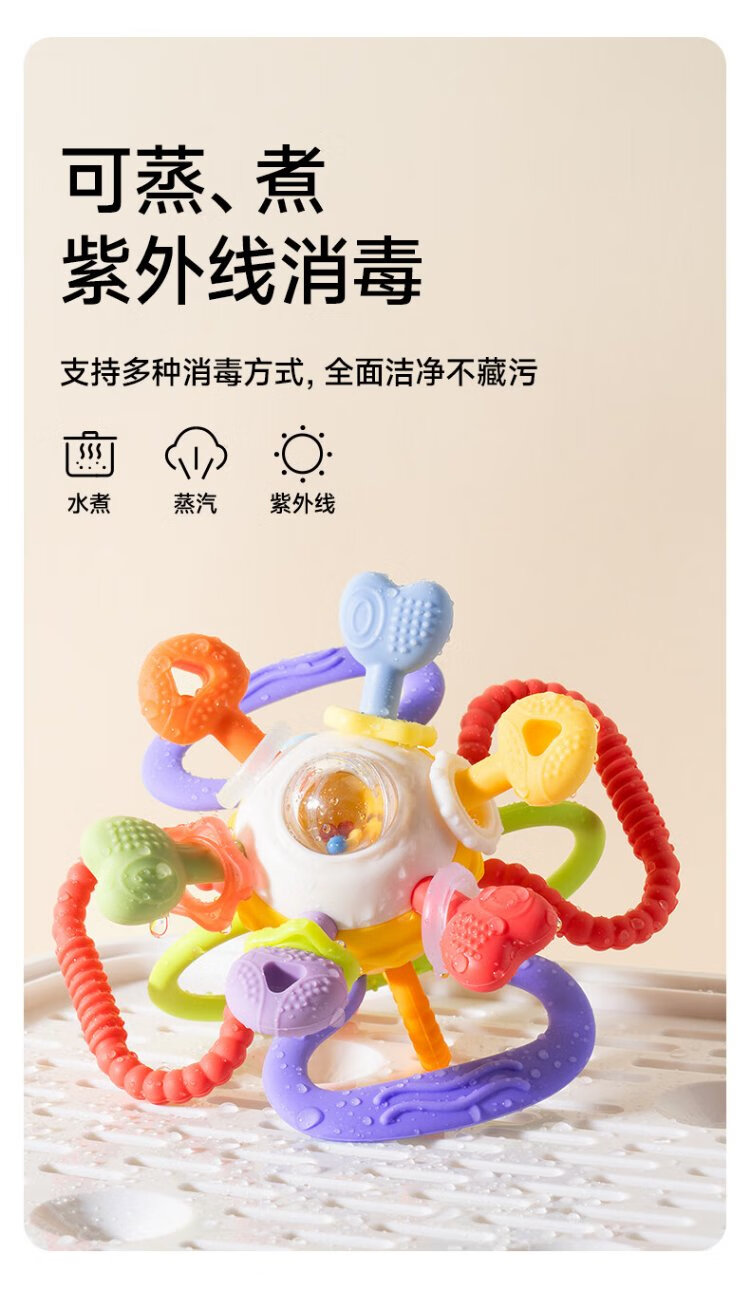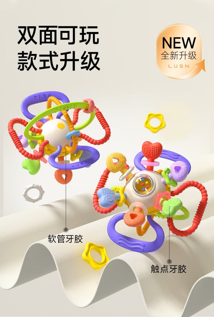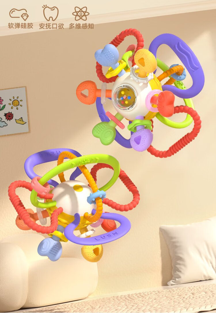 Rushan Manhattan hand ball baby toy silicone chewable teether baby 3 to 6 months old holding molars 0 to 1 years old bilateral atomic ball free storage box + anti-drop chain