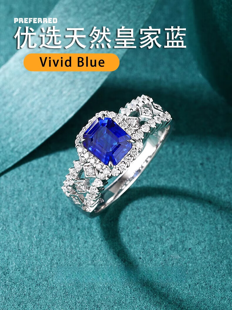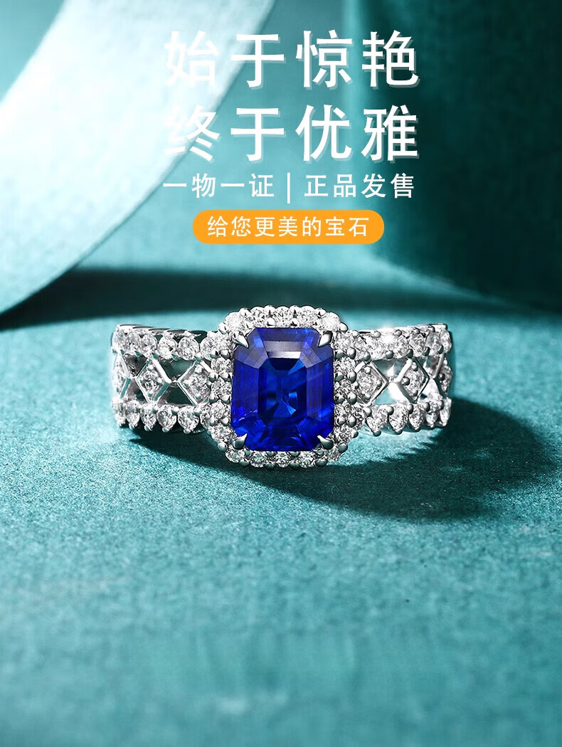 HEEKAIYI Ring Women's Royal Sapphire Ring Luxury Jewelry Chinese Valentine's Day Birthday Gift for Wife and Girlfriend Sapphire Ring (1.38ct/Selected Flawless)