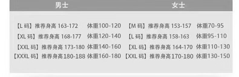 China (cm) 160-165/84-86 165-170 / 88-90 167-172 / 92-96 168-173 / 98-102 170-176 / 106-110