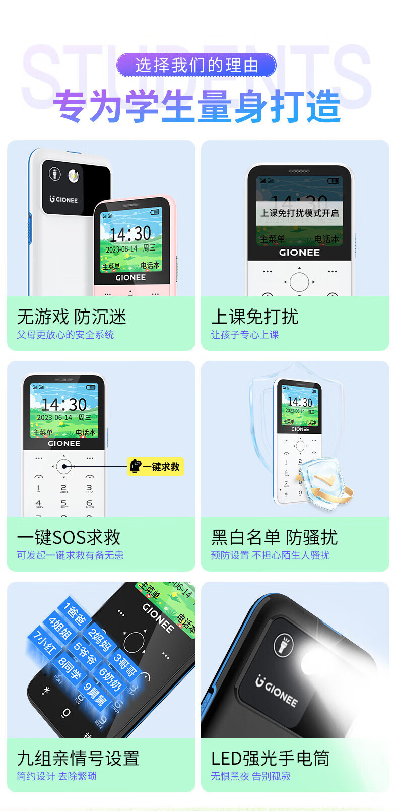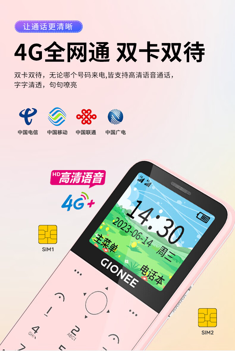 Gionee V31 mini student mobile phone, dedicated for recovering from Internet addiction, non-intelligent male and female spare, ultra-thin 4G full network communication for children, junior high school students, high school students and the elderly, black 4G full network communication