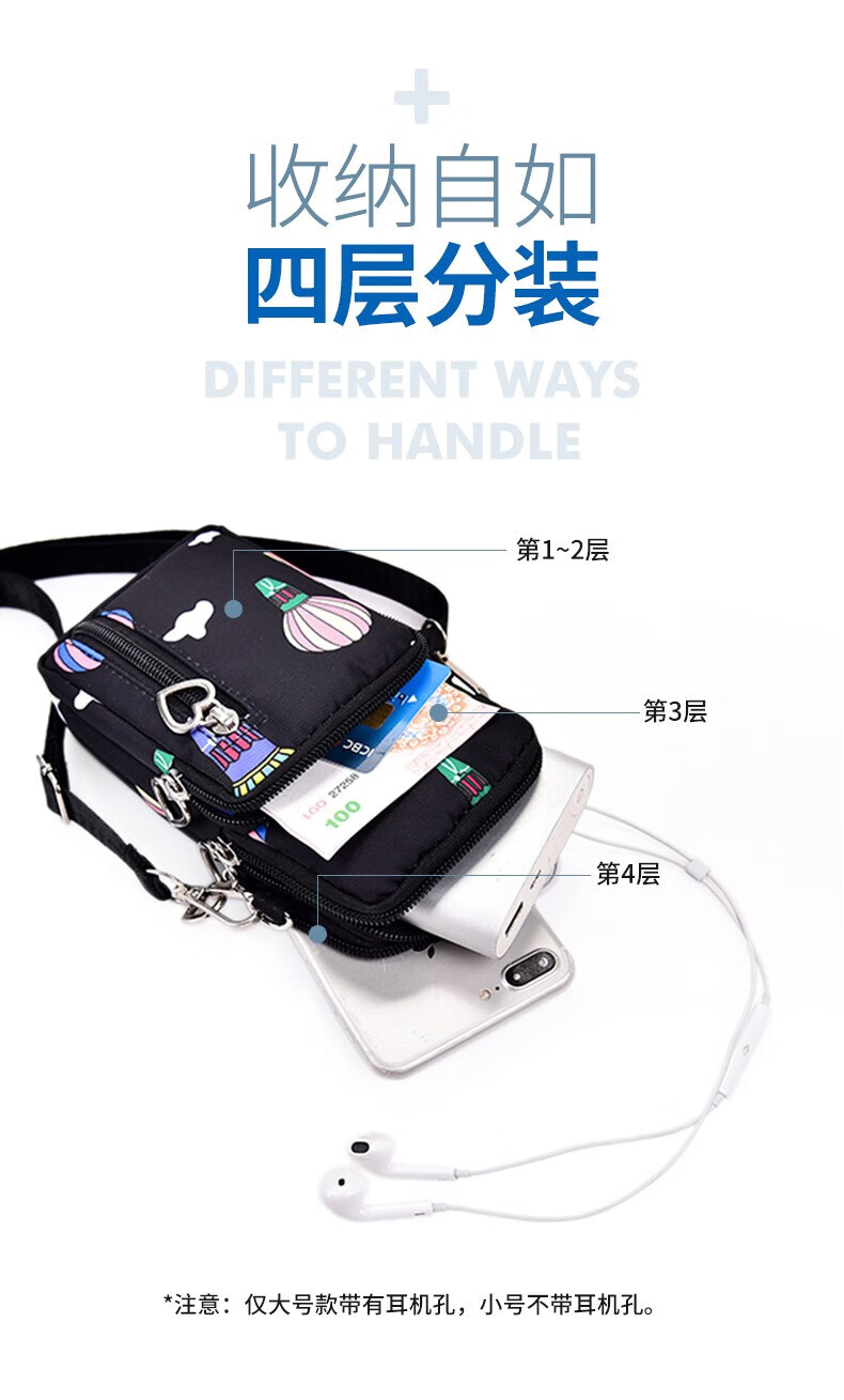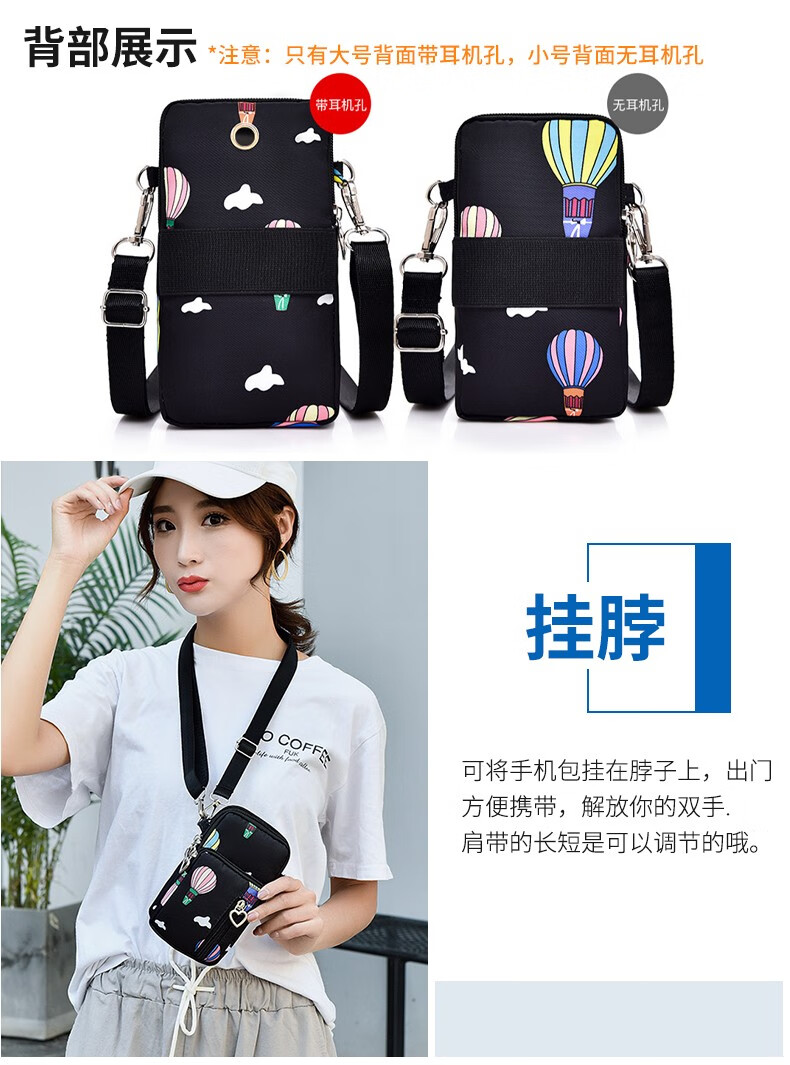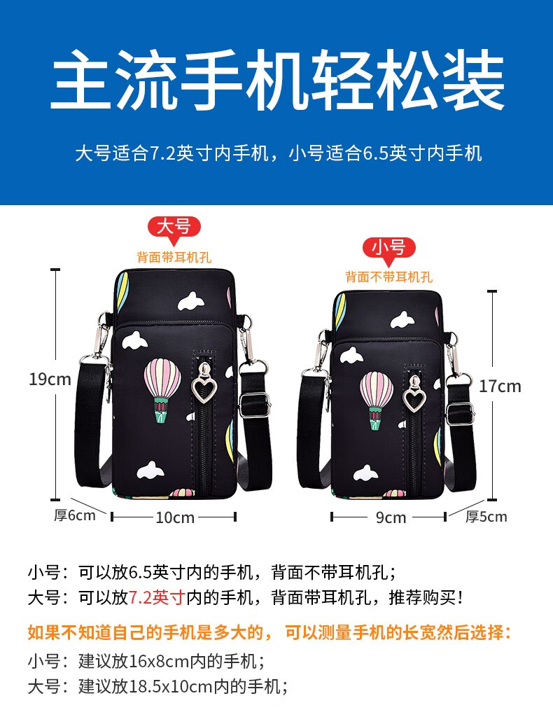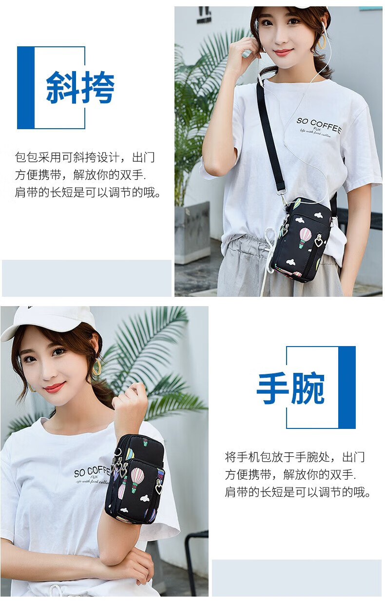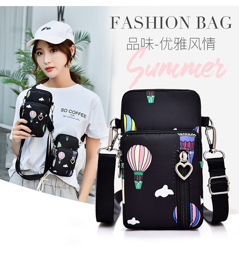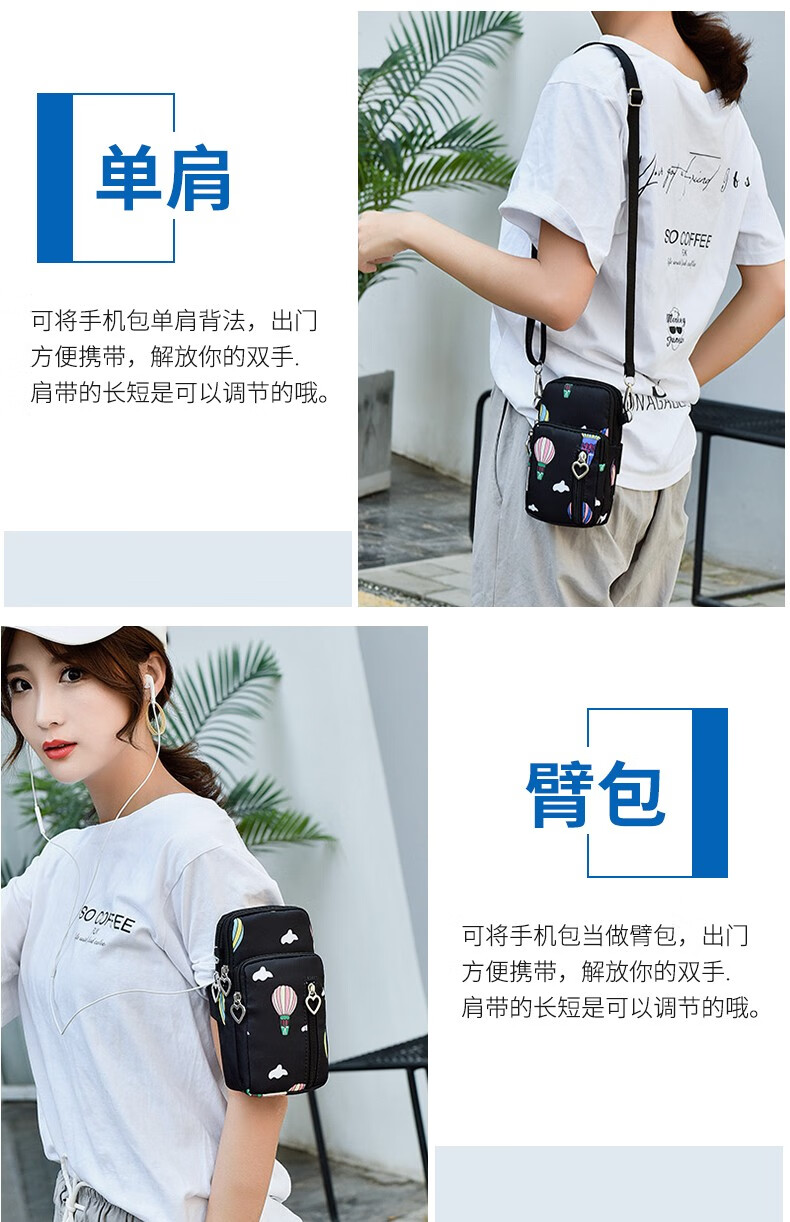Ruipa (RUIPA) mobile phone bag women's cross-body Korean version summer halter neck mobile phone bag portable hand wrist coin purse running arm bag black balloon (small size)