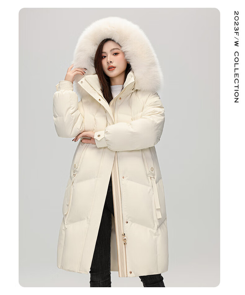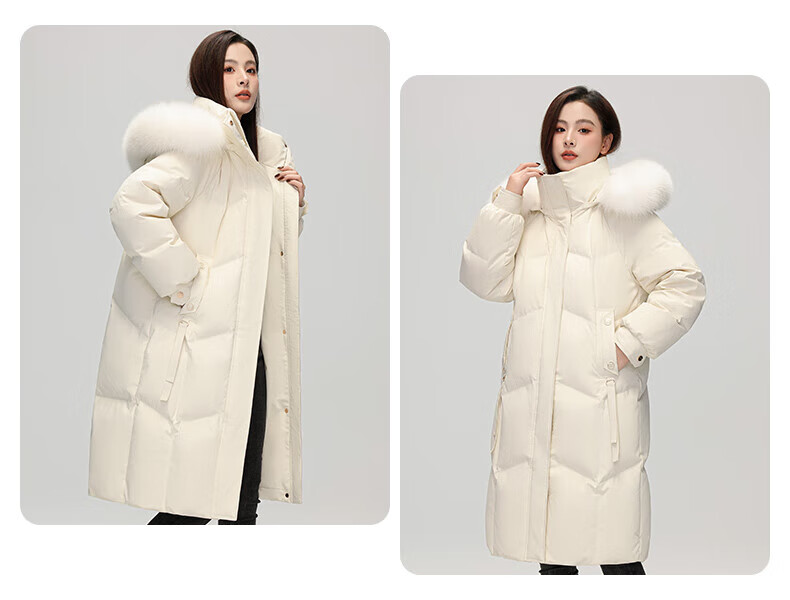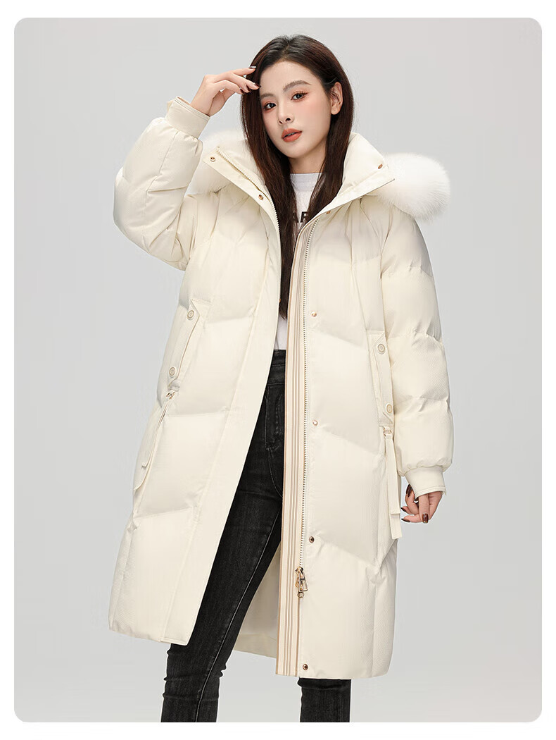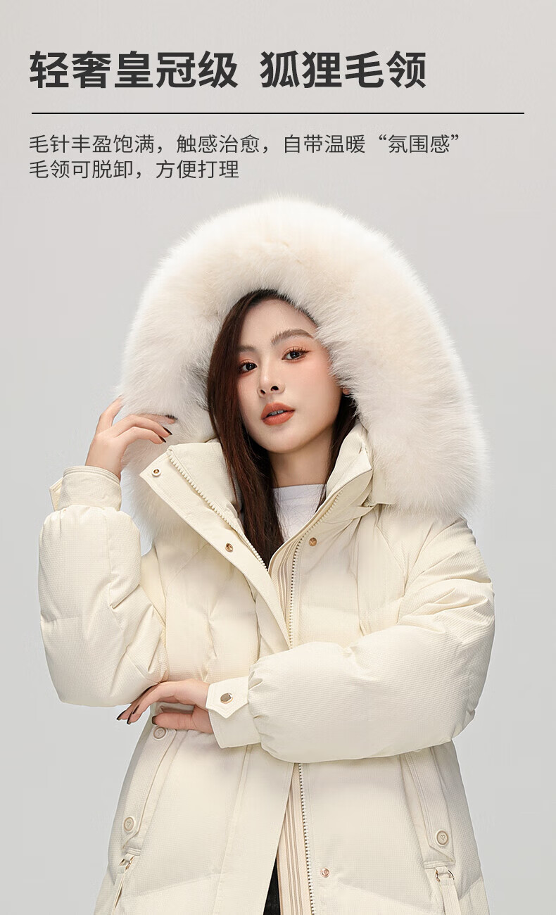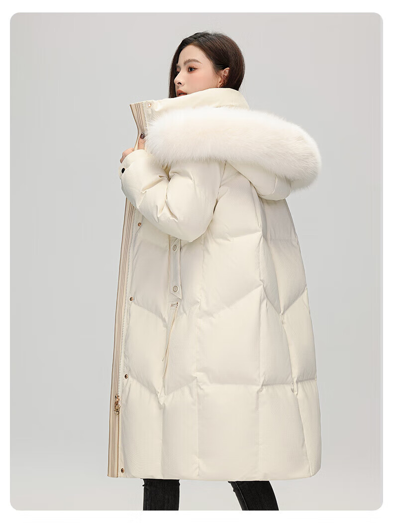 雅鹿设计师款官方大牌羽绒服女冬季2026新款长款高端狐狸毛领外套 白色 S 【建议80-110斤】