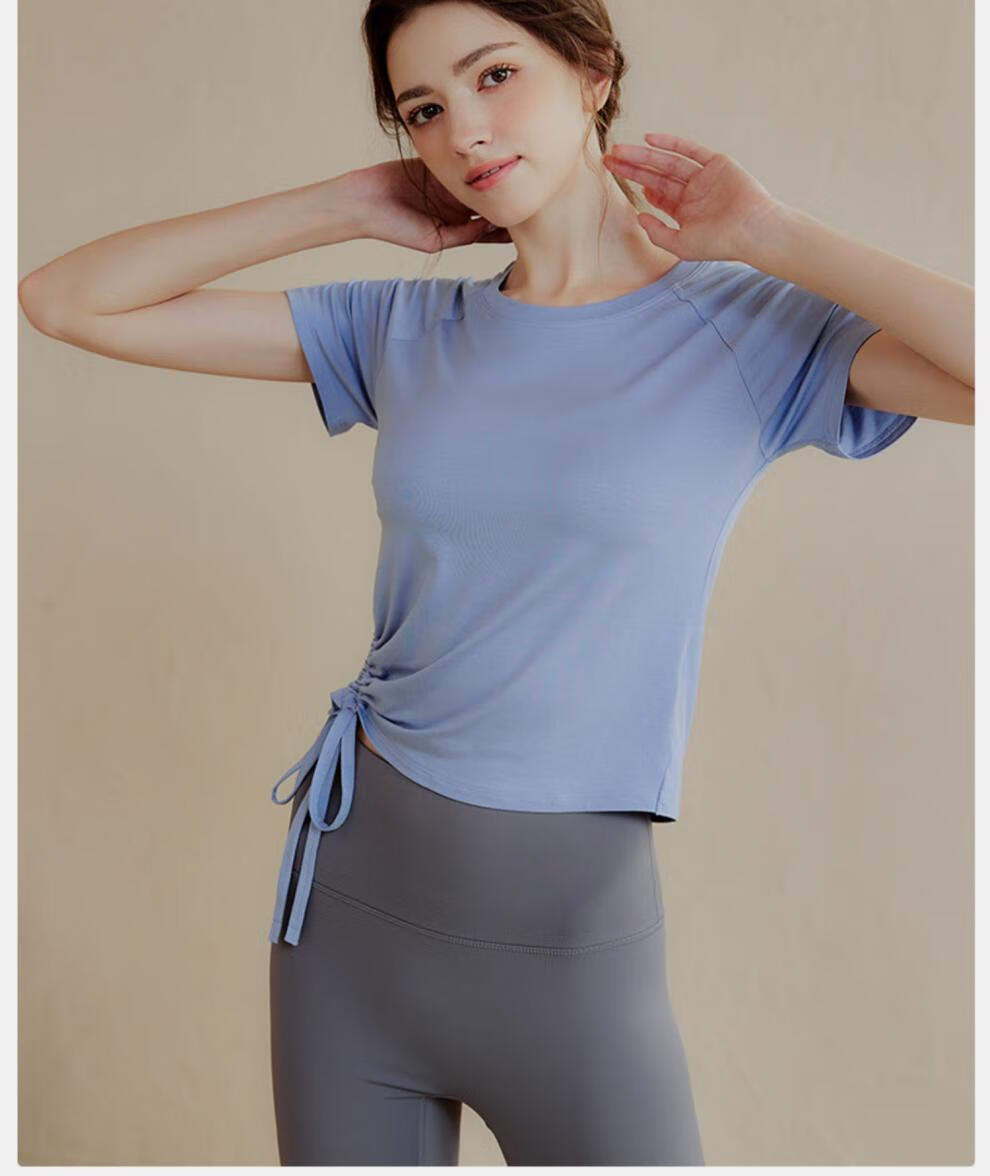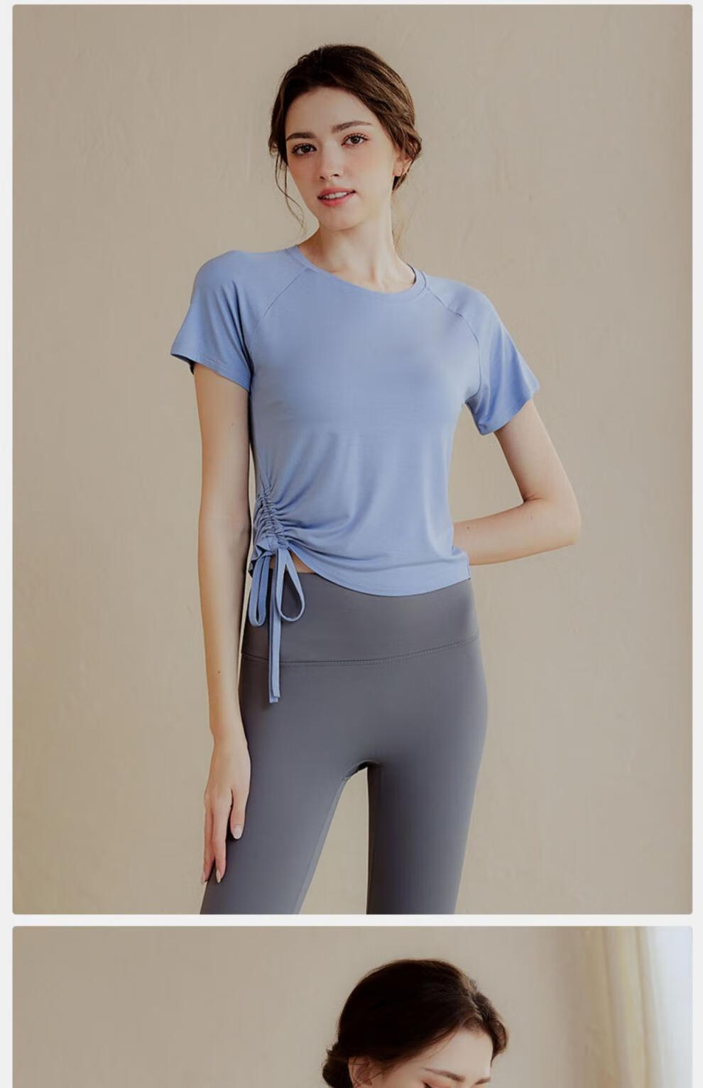 LULU CENTURY Nude quick-drying yoga wear women's thin short-sleeved T-shirt summer slim sports top running Pilates fitness wear light yellow L