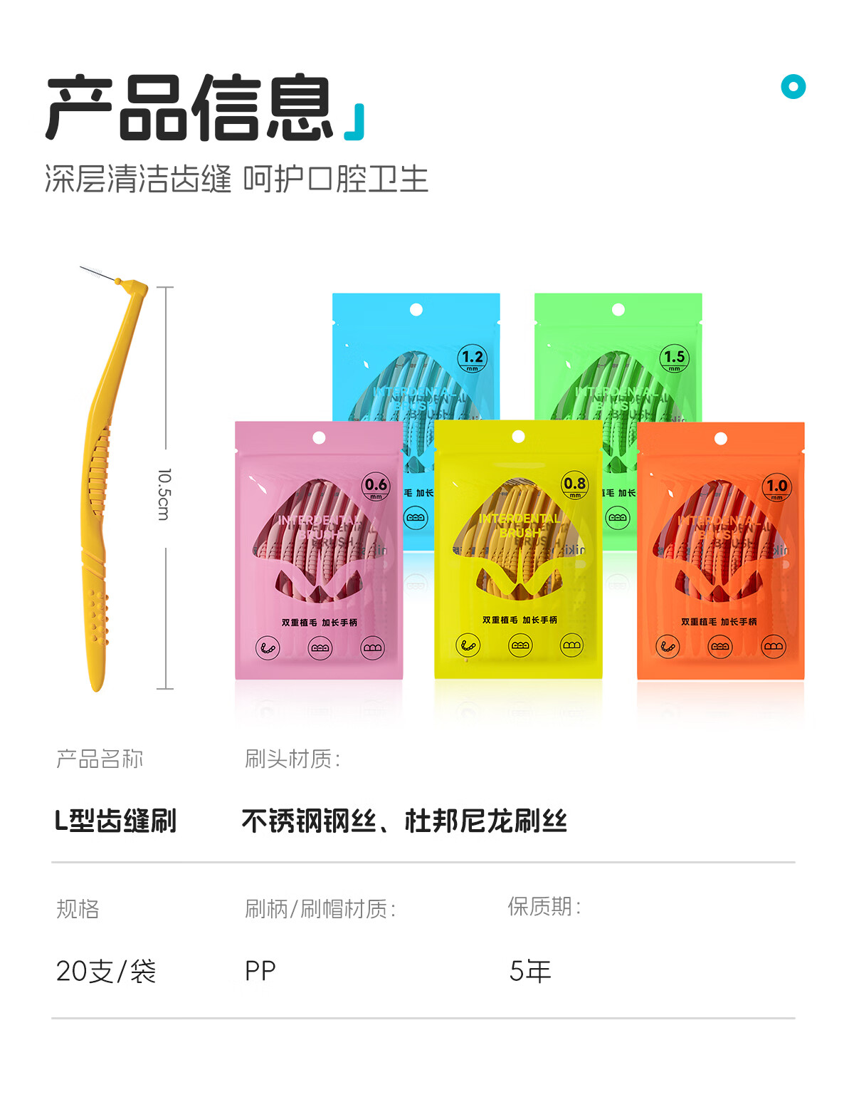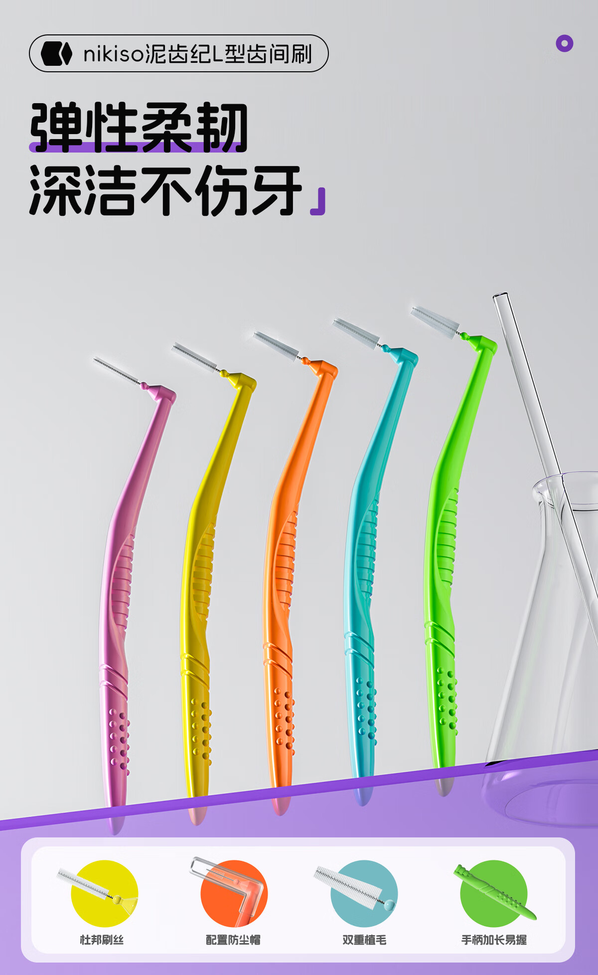 Nikiso Japan imported interdental brush 10 pieces interdental brush orthodontic correction teeth special L-shaped toothbrush 0.6mm 10 pieces 1 bag imported from Japan