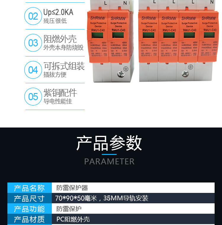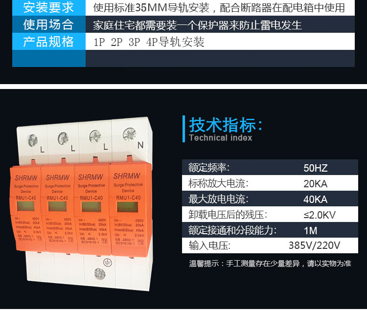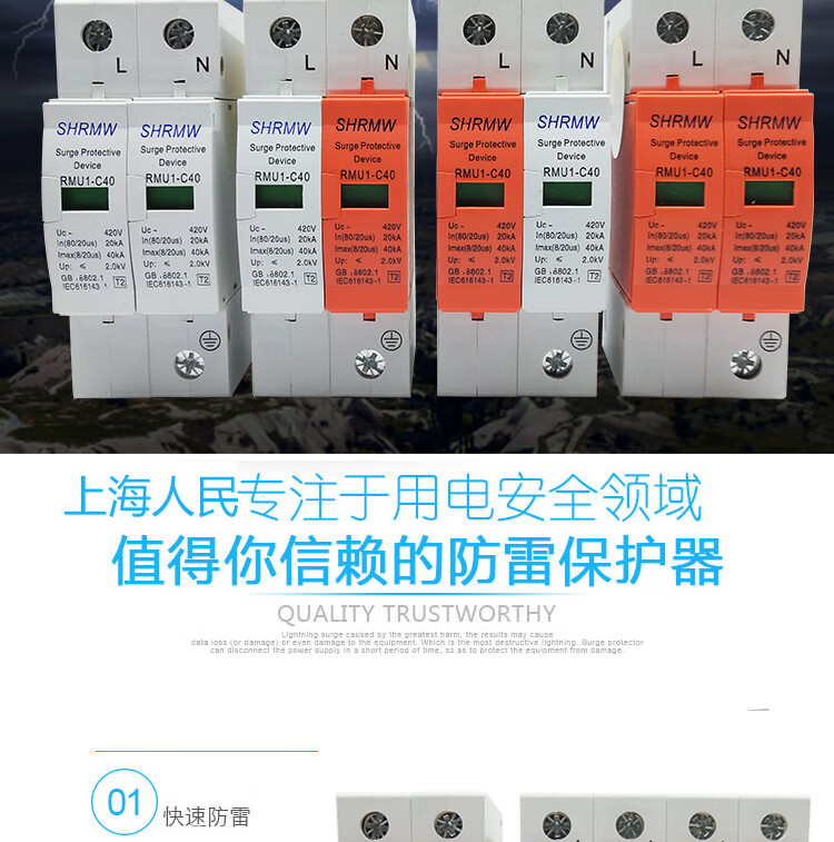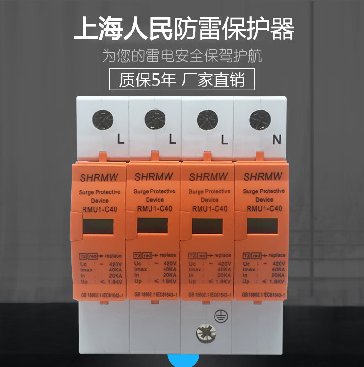 Shanghai surge protector 4P power supply lightning arrester 220V 2P arrester surge switch red 40KA2P single phase 220V