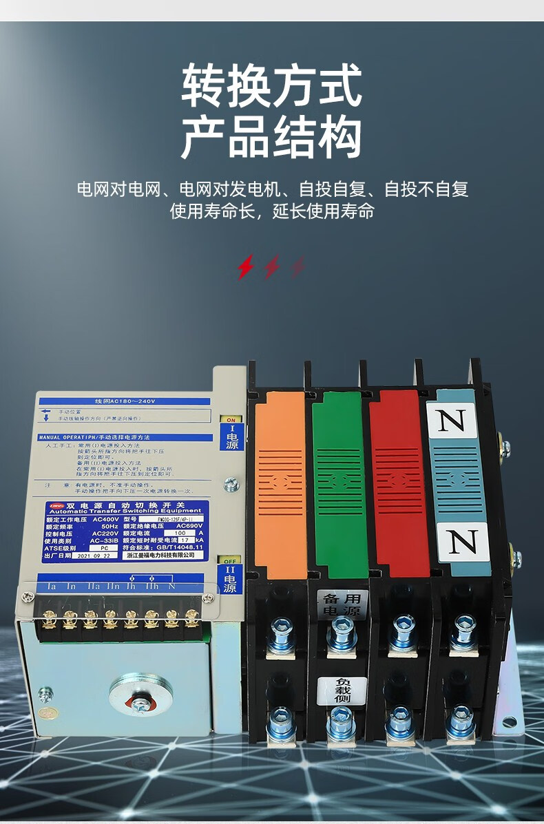 Dual power automatic transfer switch 100A250A seamless switching uninterruptible power supply self-transfer and self-restoration power converter 350A 4p