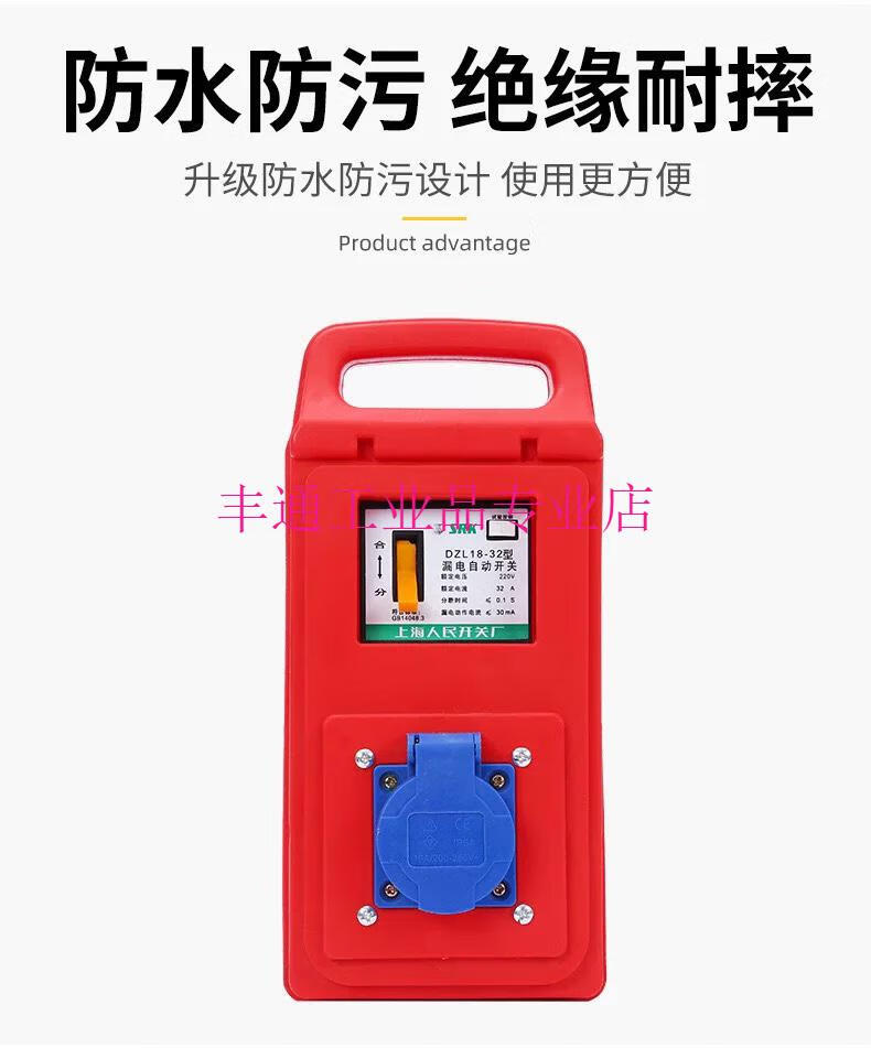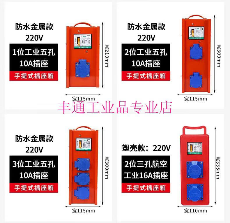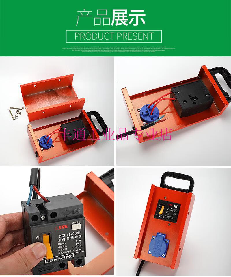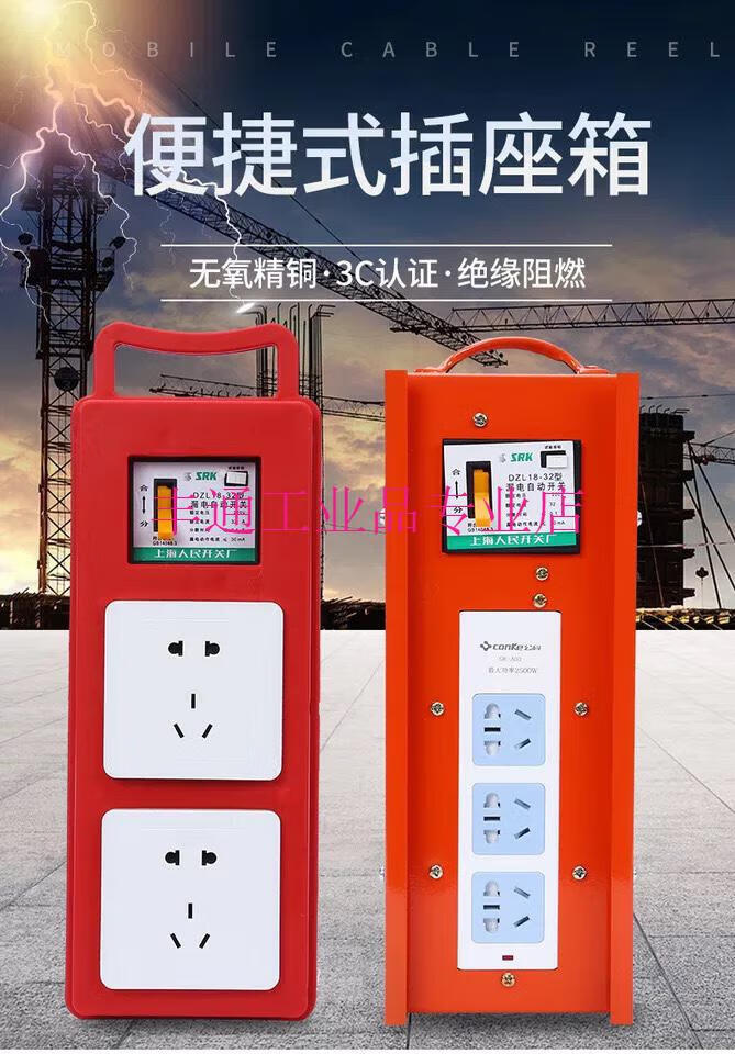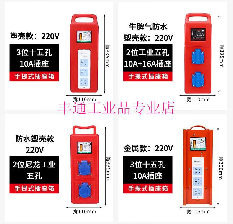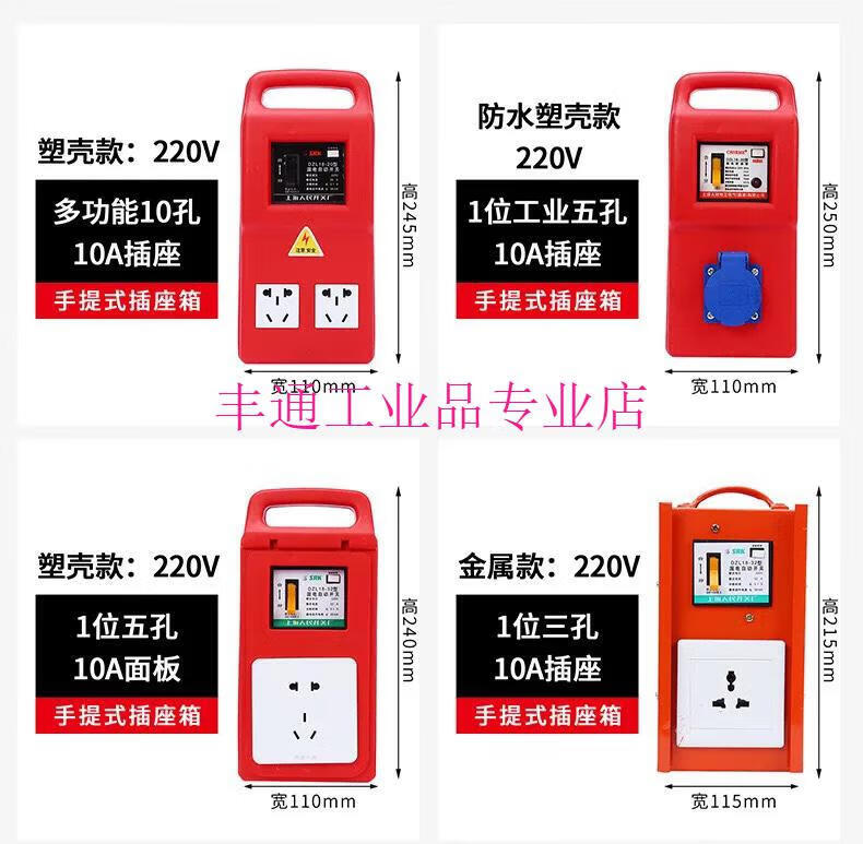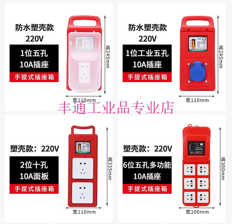 Construction site portable small electrical box with leakage protection plug-in strip, automatic switch circuit breaker, industrial power socket with gate, 6-position porous multi-function 10A socket (plastic shell model)