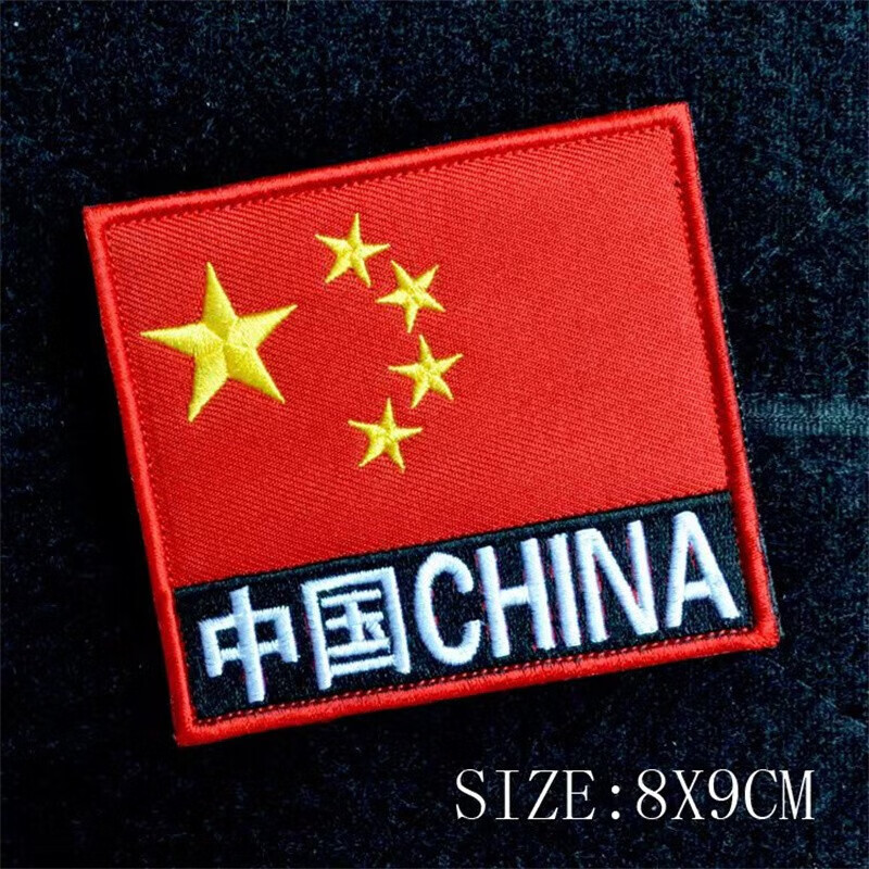 Mi Hong embroidery Velcro patch China tactical Velcro armband outdoor backpack patch Velcro badge FOR CHINA red edge 6*8 cm 1 pack