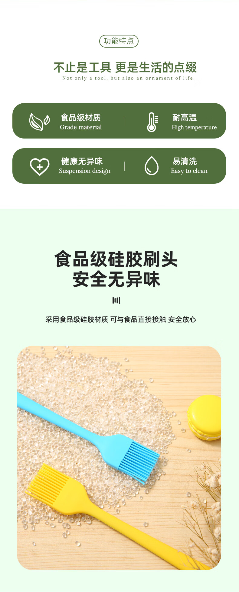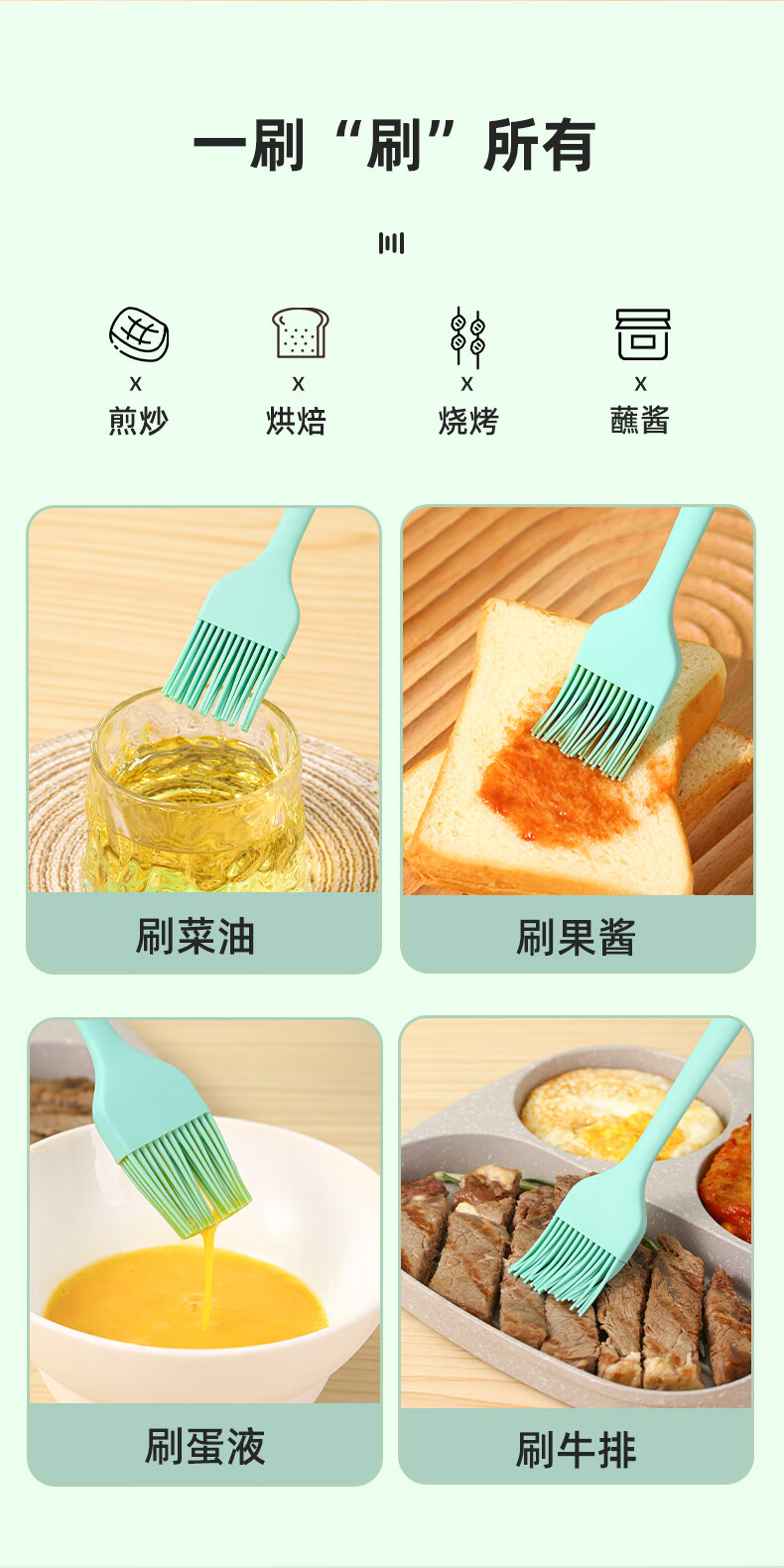 Xinfu bag household baking oil brush cream tool high temperature resistant pancake pancake sauce brush non-shedding silicone barbecue brush large olive green food grade/high temperature resistant delivery