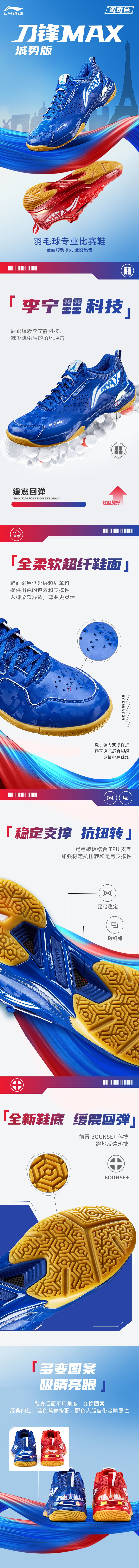 Li Ning Badminton Shoes Blade MAX City Version New Mandarin Duck Color Men's and Women's Technology Shock Absorbing Breathable Sports Shoes Dream Blue/Red Flame Red-2AYAU005 Standard Last 39 (240mm)