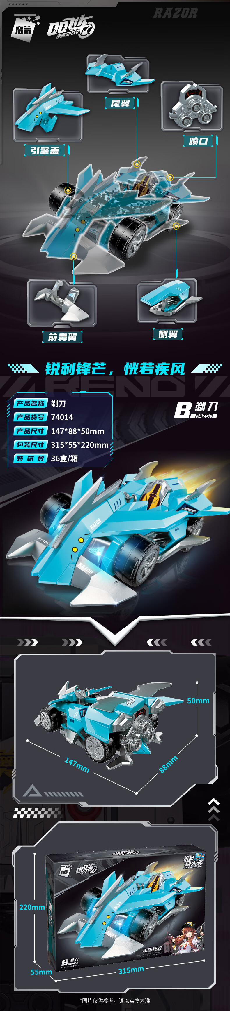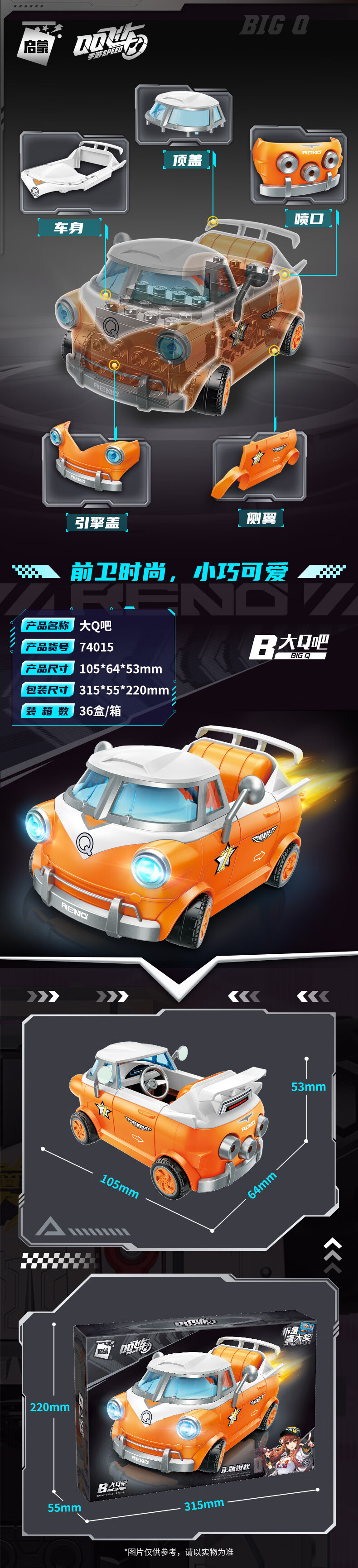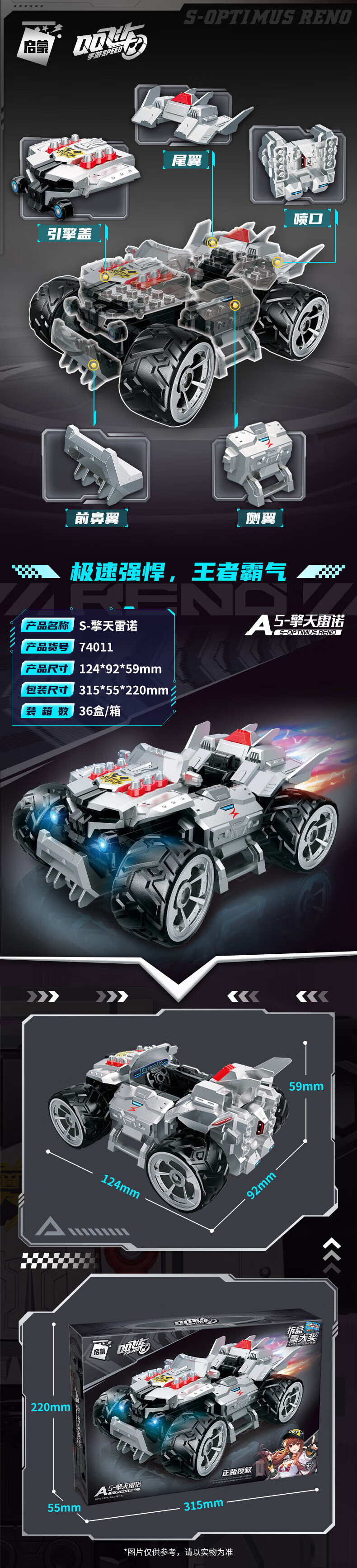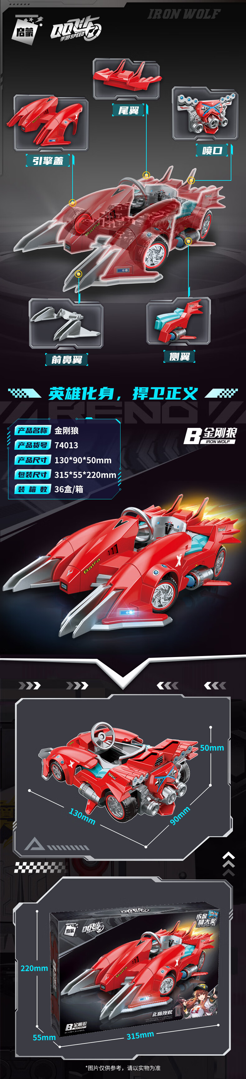 QQ Speed ​​Assembled Building Blocks Children's Toy Car Renault Racing Sun Wukong Wolverine Remote Control Mecha Model Monkey King celebrates the New Year