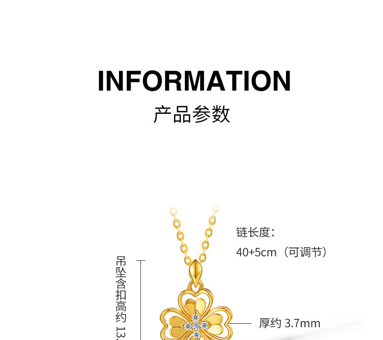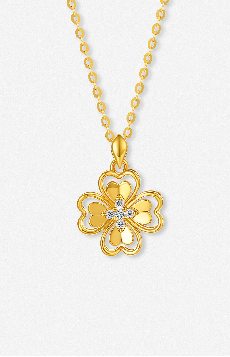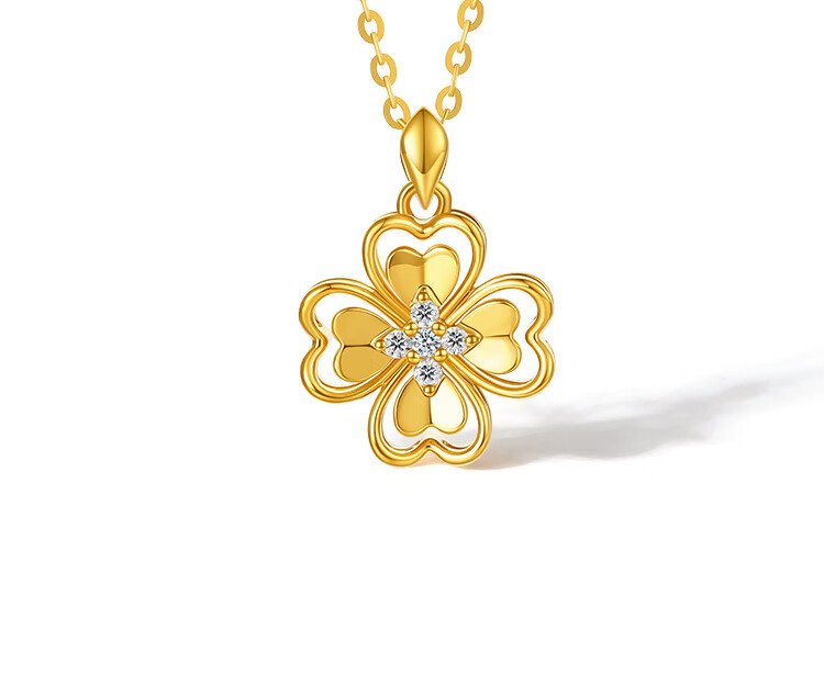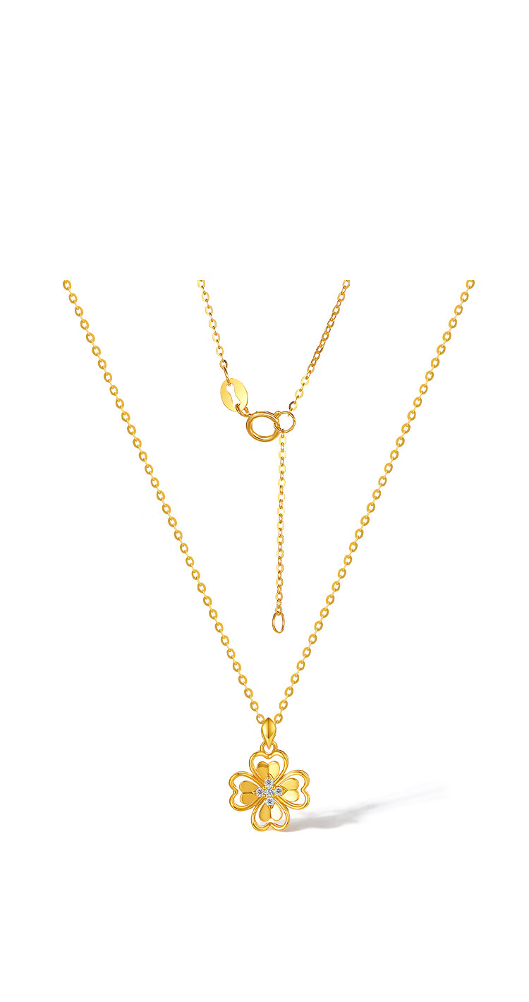 Saturday blessing yellow 18K gold diamond necklace women's four-leaf clover diamond pendant clavicle chain for girlfriend T holiday gift 40+5cm tail chain