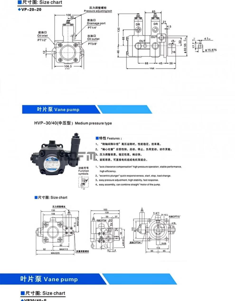 VP-20-FA3 variable vane pump VP-153040FA3SHENYU hydraulic oil pump VP1-20-70 HVP-30-FA3 (14mpa) high pressure
