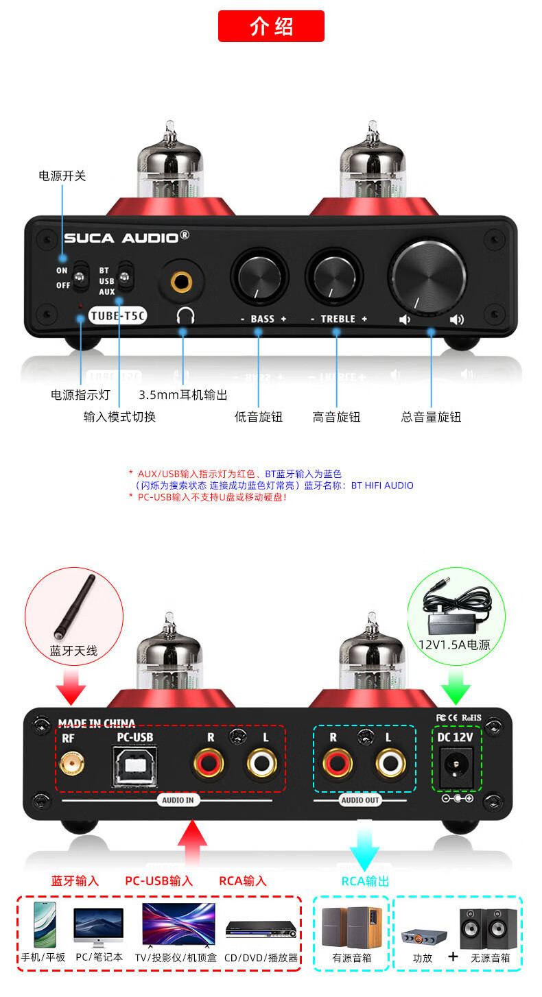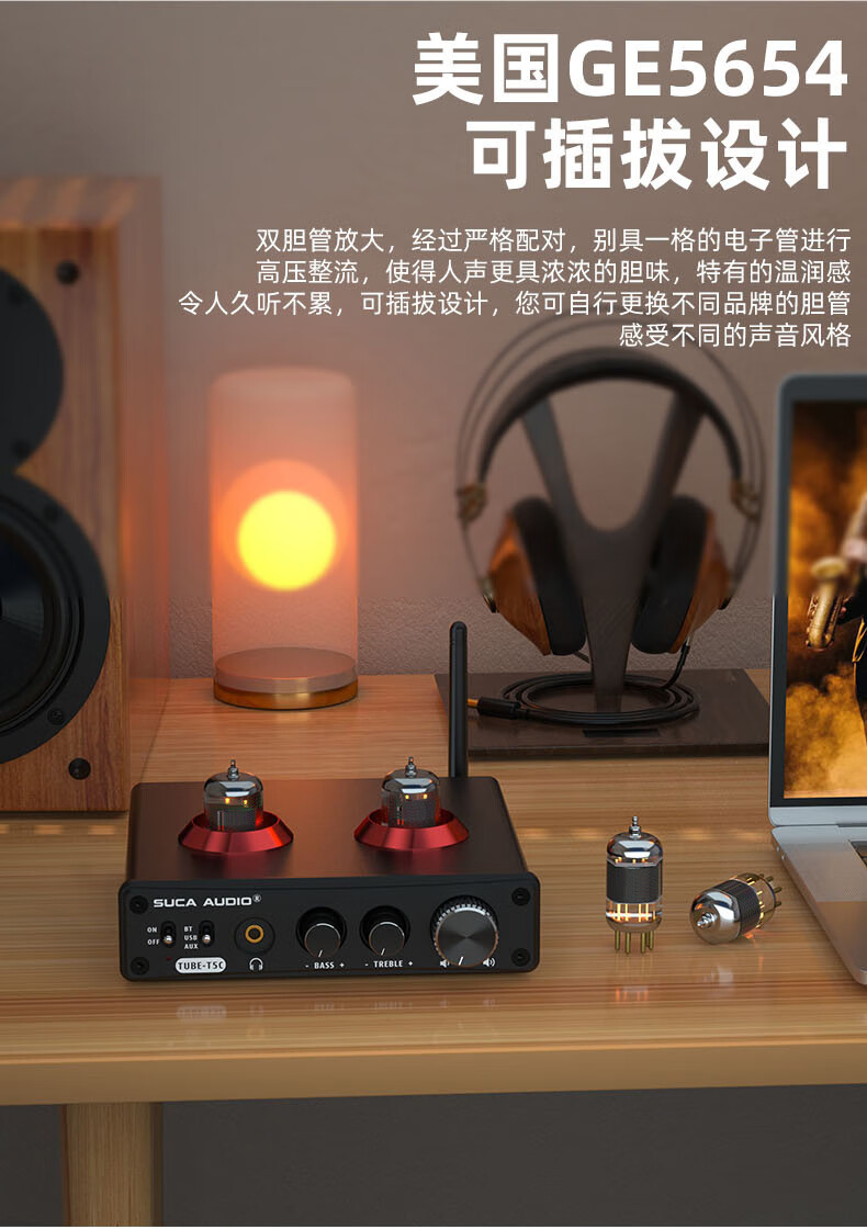 SUCA AUDIO T5C tube audiophile amplifier Bluetooth decoding USB headphone amp DAC lossless amplifier hifi tube preamp black with American 5654W tube