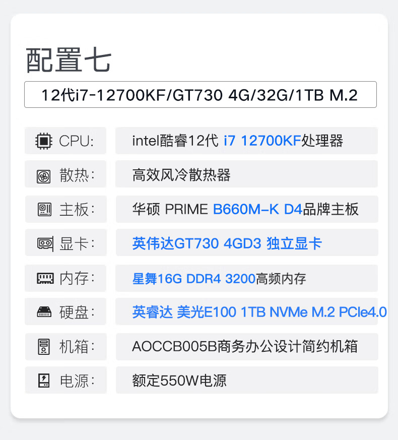 ASUS office computer desktop host Core i7/i5 12400/13400/12700 home design art business enterprise procurement and assembly mini complete set with five i5 13400F丨GT730 4G丨32G single host