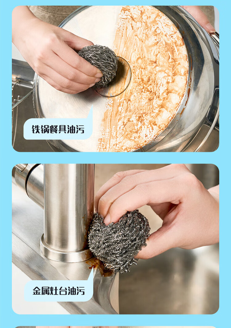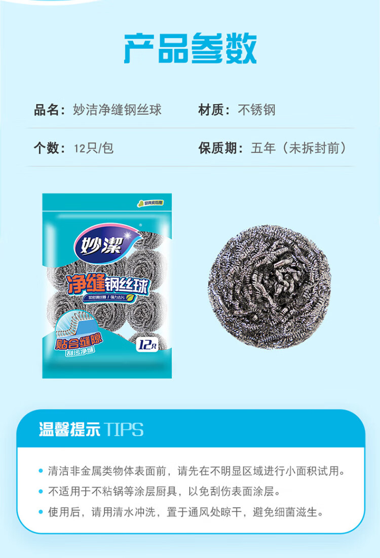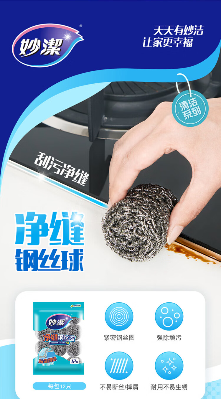 Miaojie Clean Seam Steel Ball Household Kitchen Cleaning Ball Steel Wire Dishwashing and Decontamination Brush 12 Pack