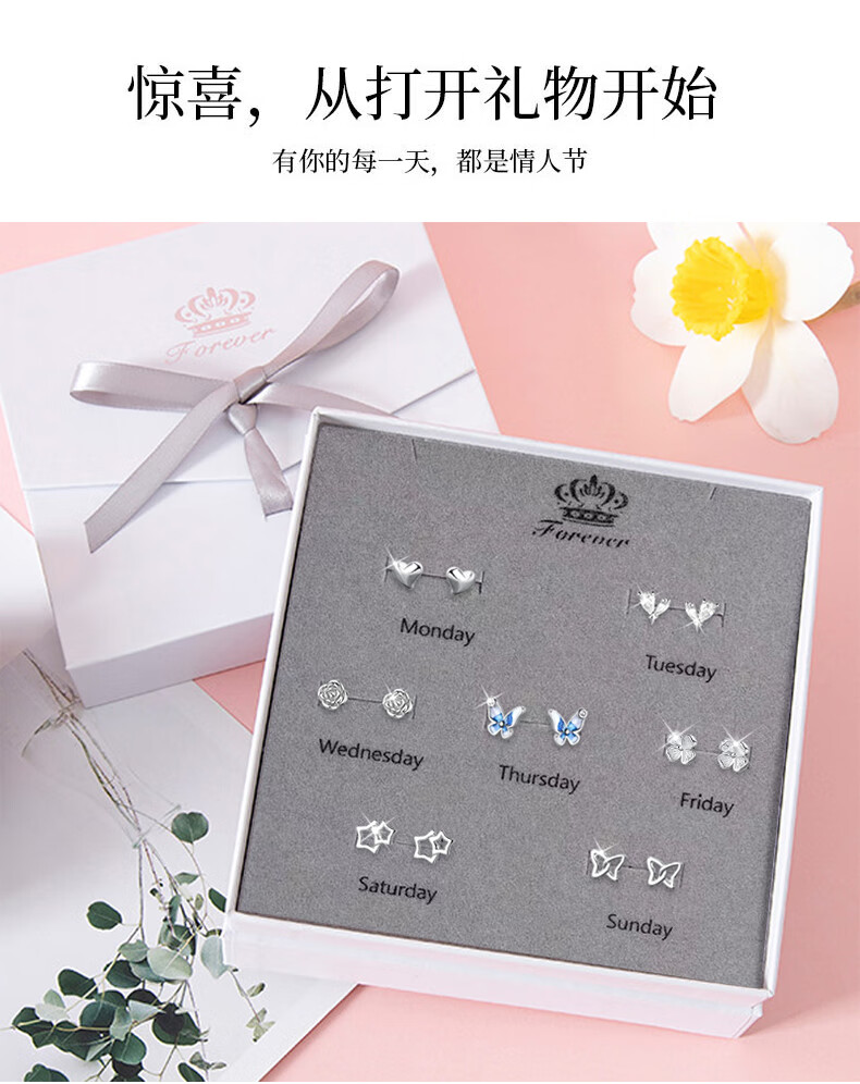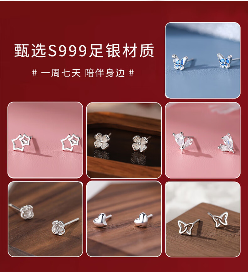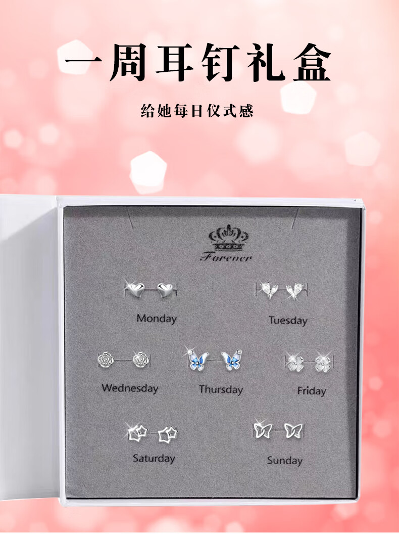Su Shiliu 999 silver one week earrings women's week earrings set high-end earrings female birthday gift for girlfriend, wife and best friend 999 pure silver week earrings seven pairs set