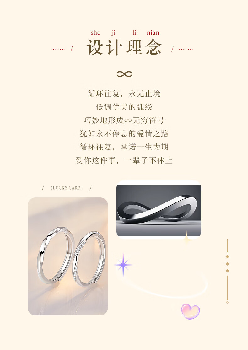 Lao Fengxiang 925 Silver Couple Ring Simple Proposal Confession Live Ring Jewelry Valentine's Day Birthday Gift Girlfriend Wife Mobius Infinite Love Couple Ring