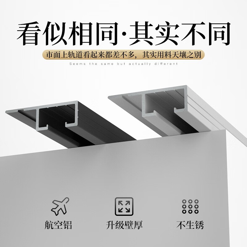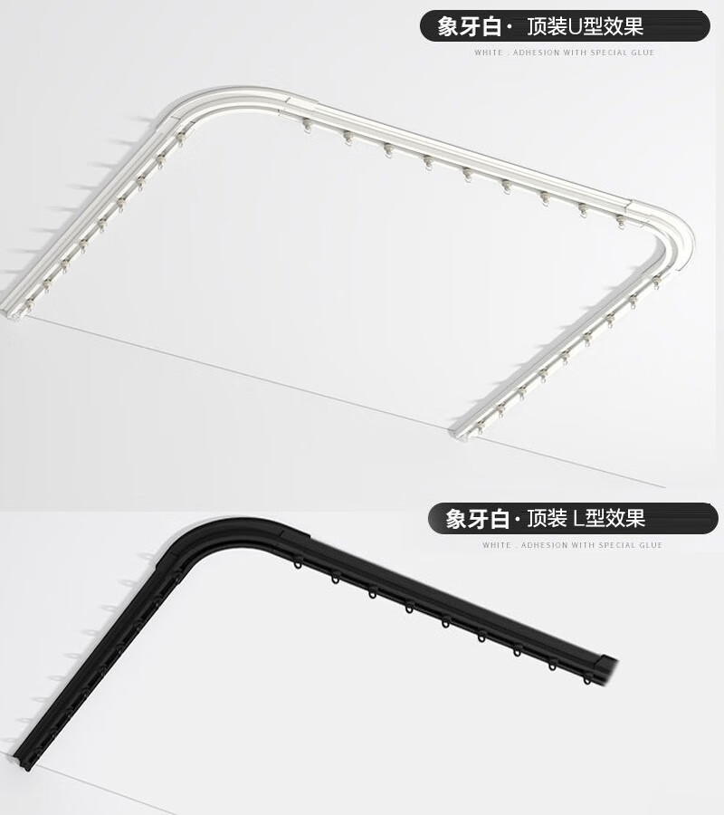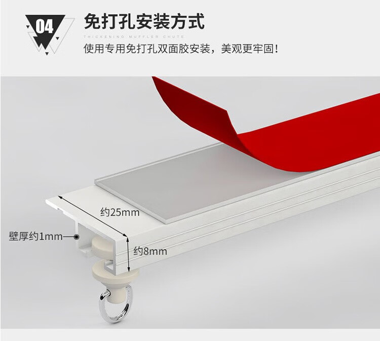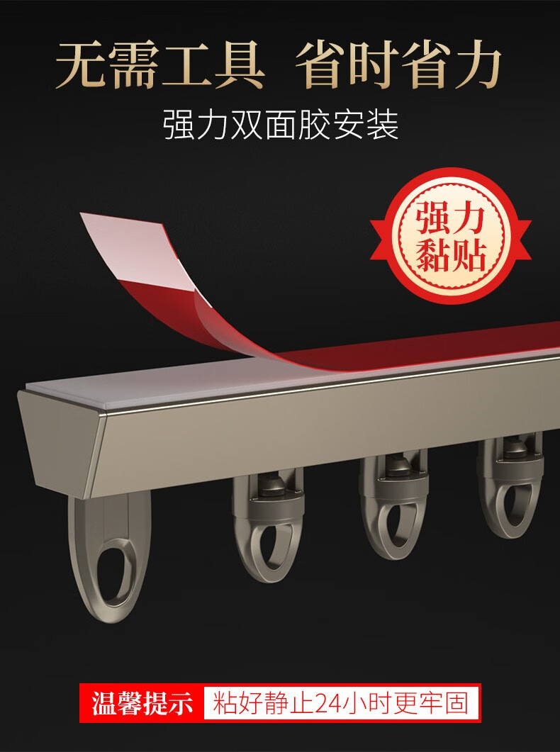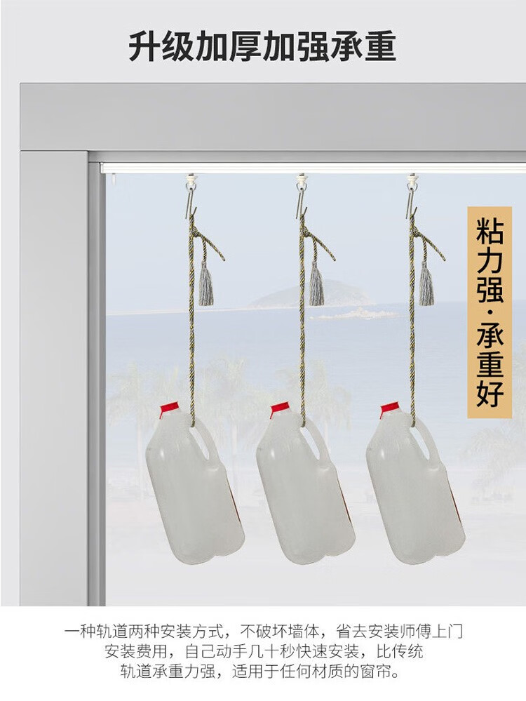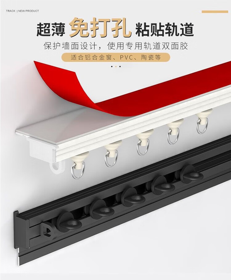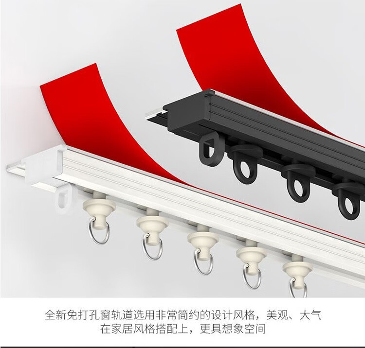 Blackout self-adhesive curtains without punching track pulley hidden track adhesive top-mounted Velcro curtain rod perforated type V-shaped thickened invisible white top-mounted type 1.6 meters