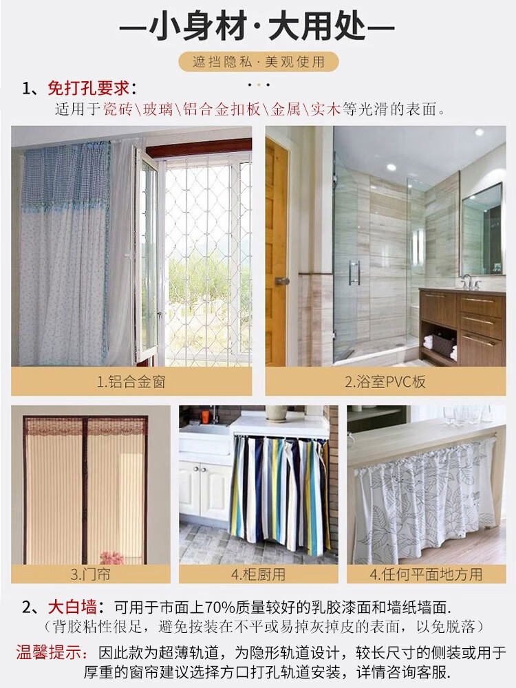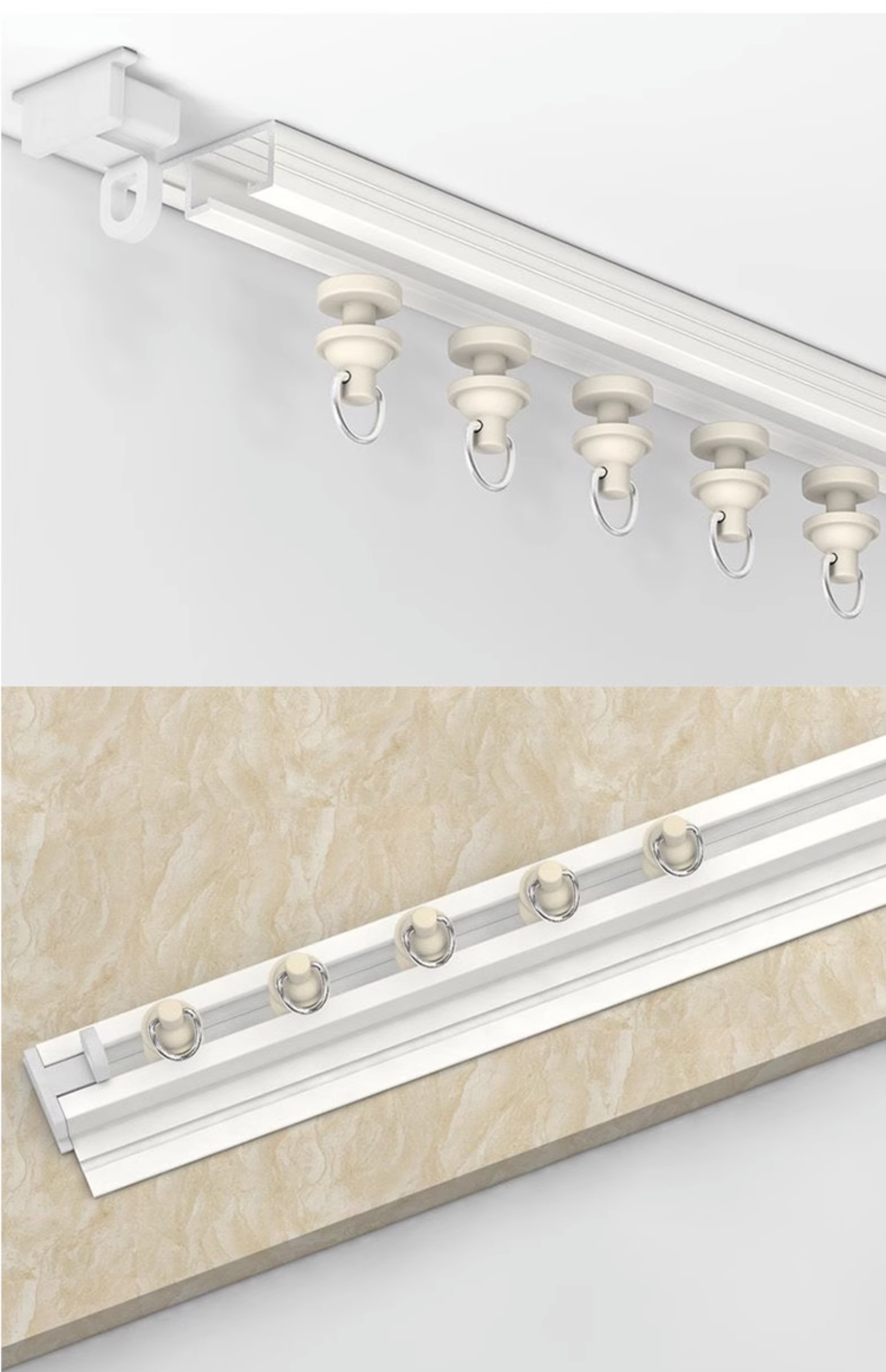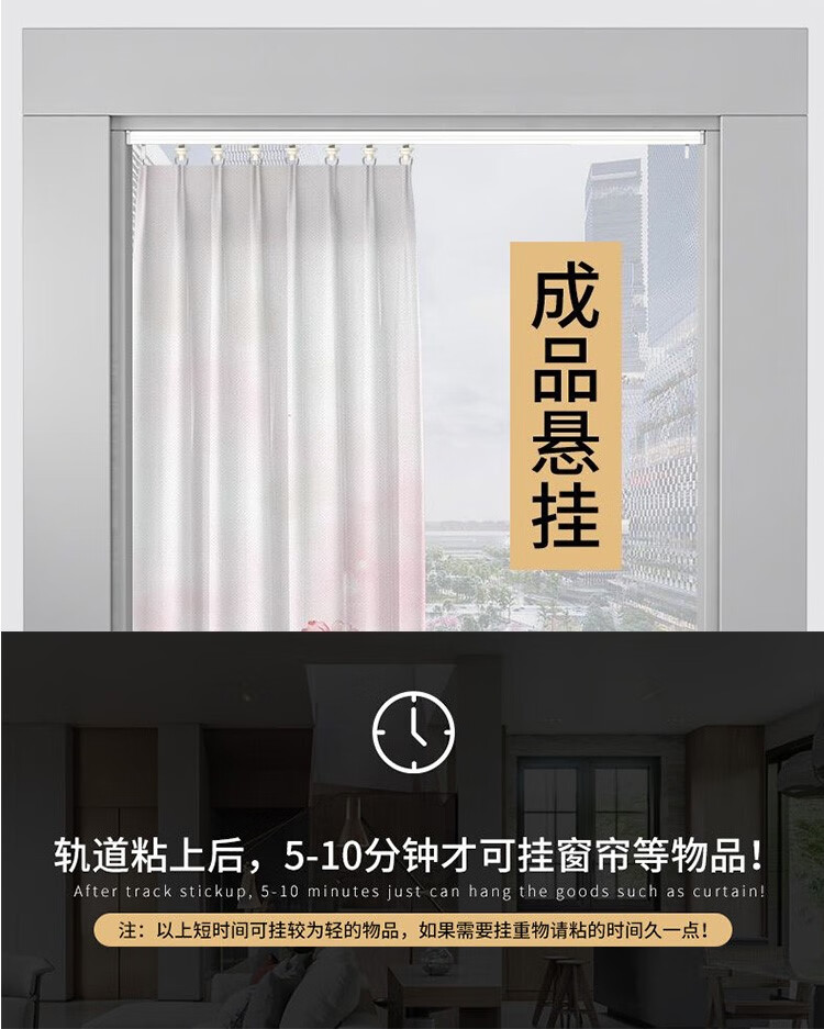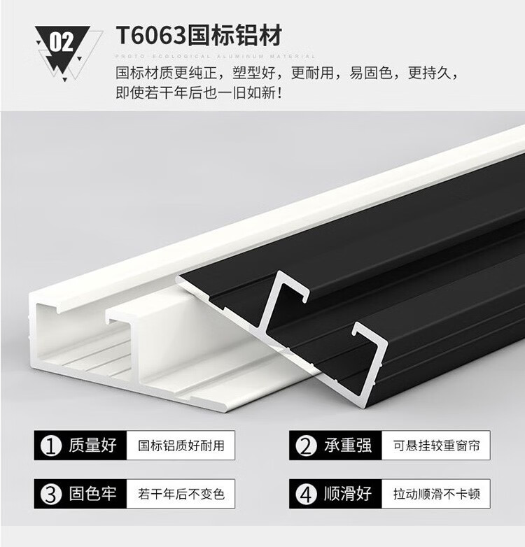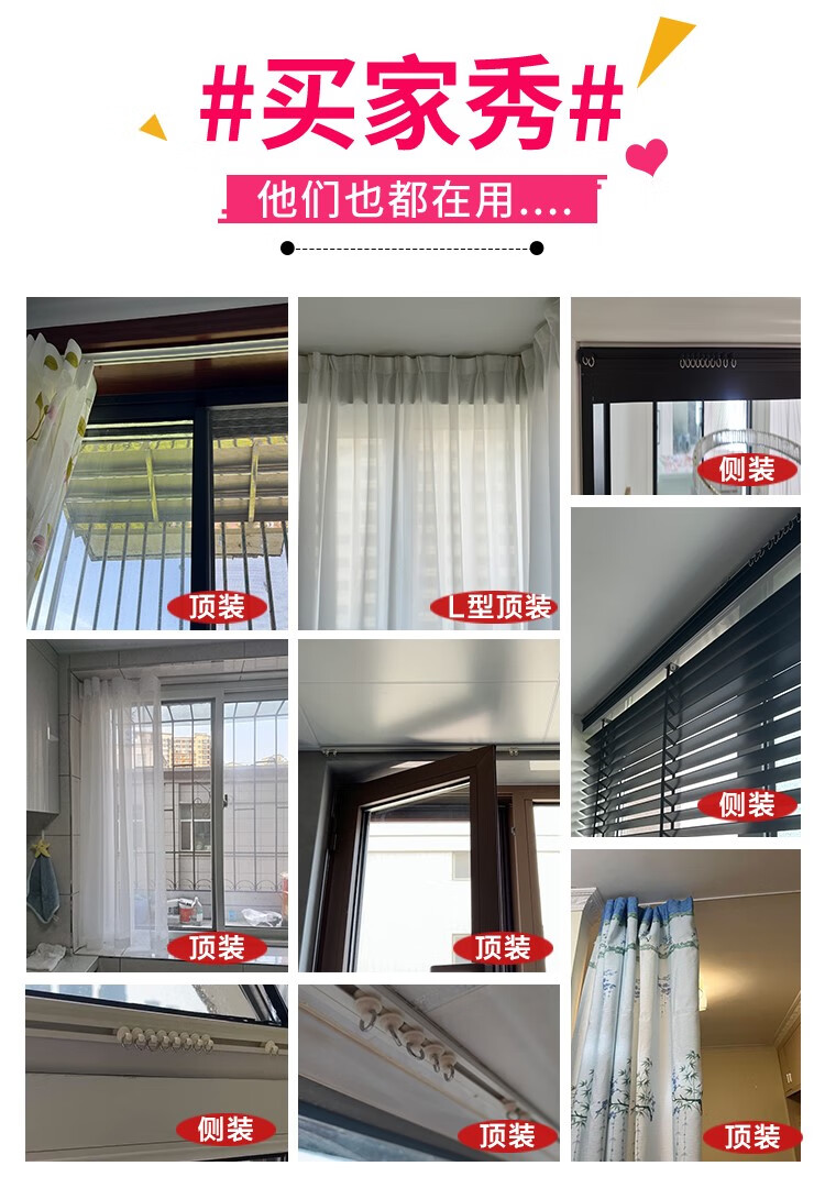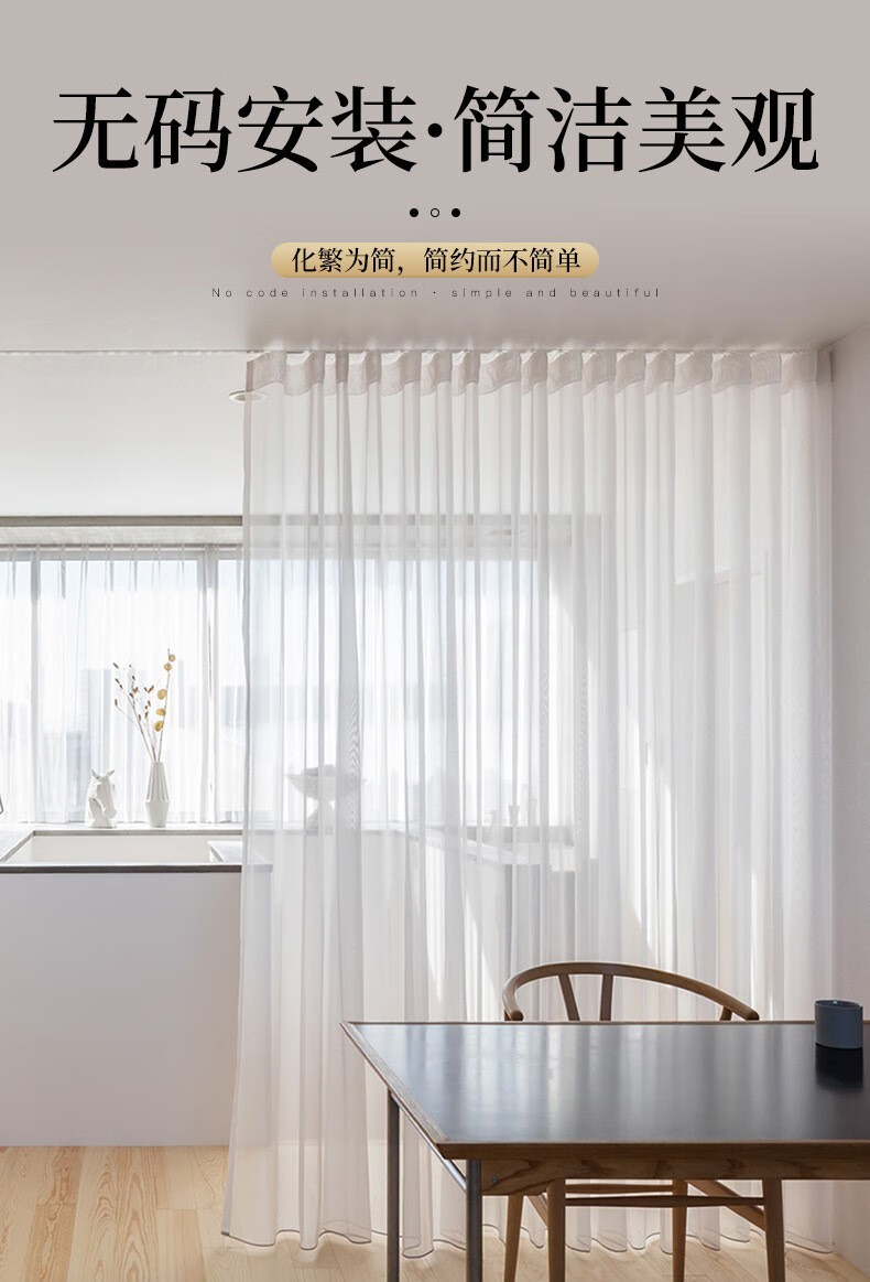 Blackout self-adhesive curtains without punching track pulley hidden track adhesive top-mounted Velcro curtain rod perforated type V-shaped thickened invisible white top-mounted type 1.6 meters