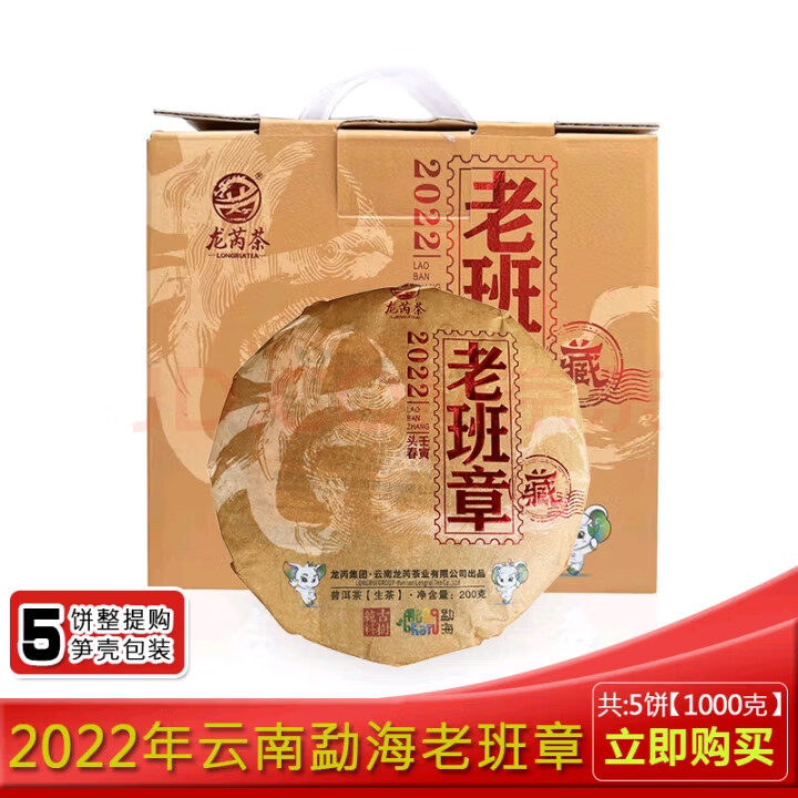 Longrui Ancient Tea Longrui Tea 2022 Brown Mountain Laobanzhang 200g Small Cake Pu'er Tea Pu'er Raw Tea Spring Tea Overbearing Aroma