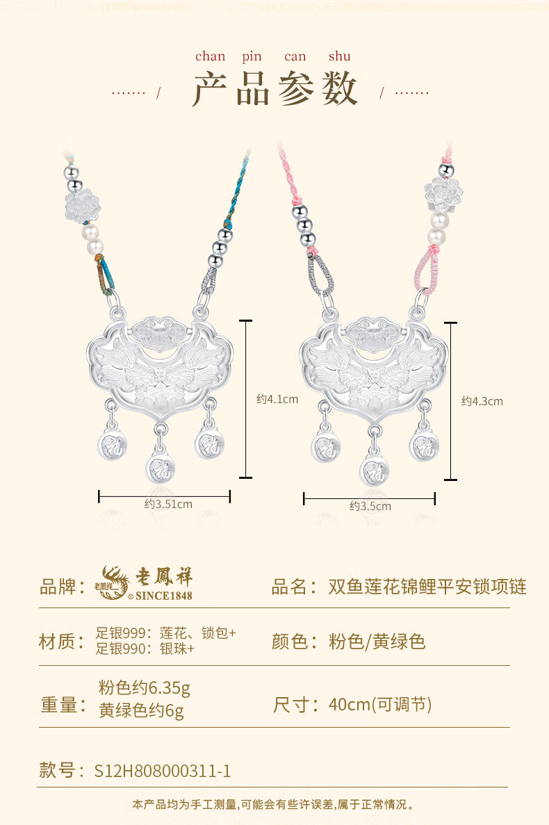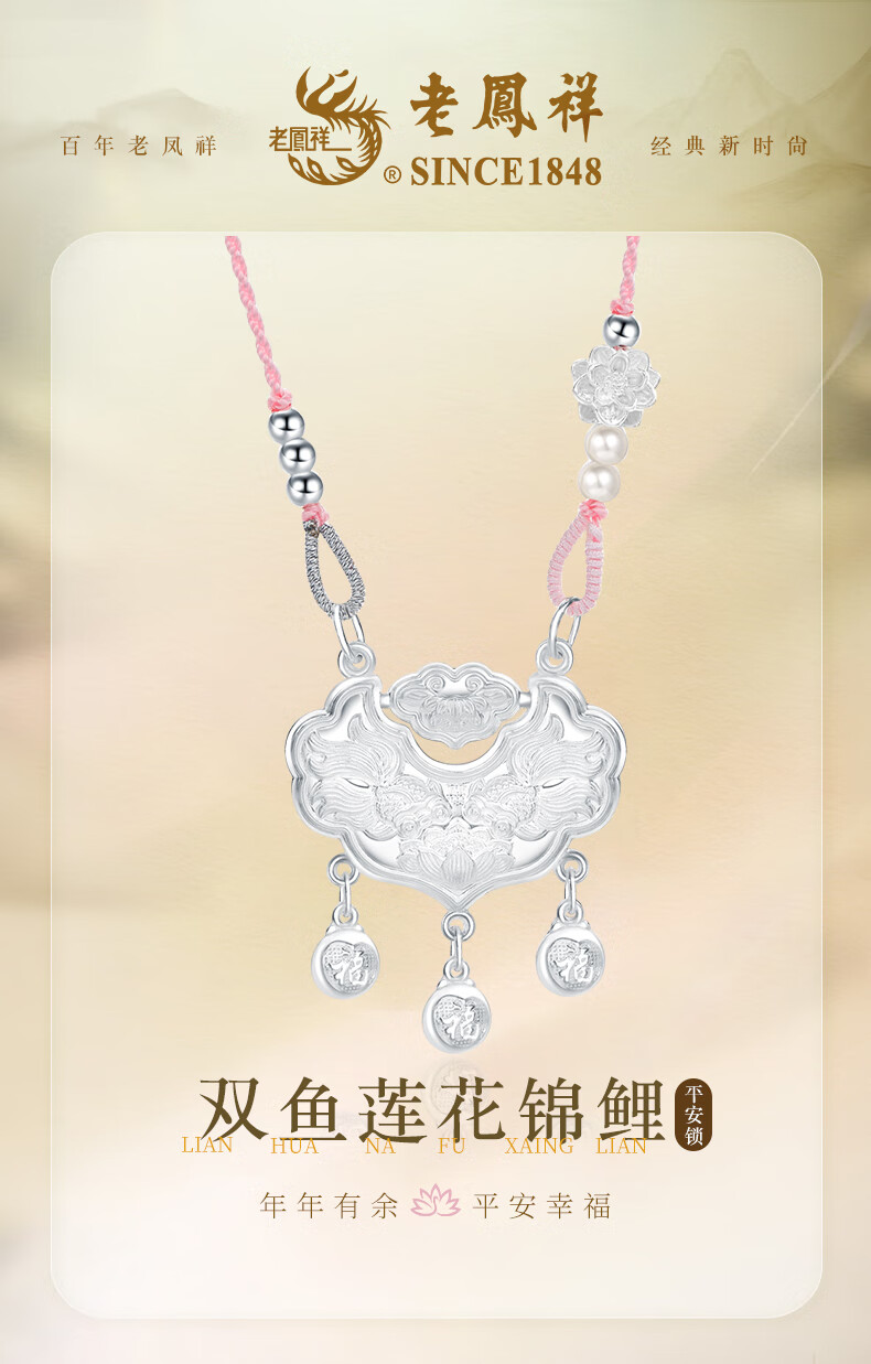 Lao Fengxiang pure silver necklace for women Koi safe longevity lock pendant jewelry high-end birthday anniversary gift for girlfriend and wife pink rope style * safe lock * local warehouse / nearby delivery