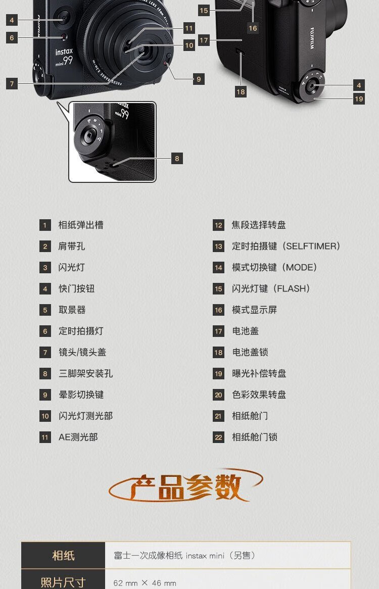 Fuji (FUJIFILM) instax instant camera mini99 classic black package 2 official content + 20 pieces of photo paper