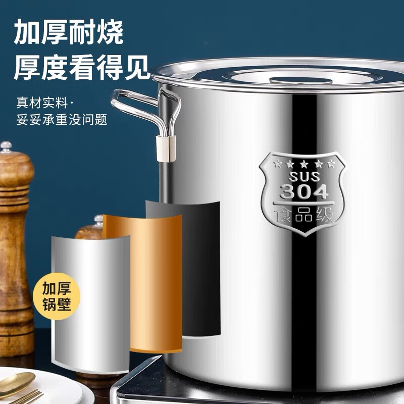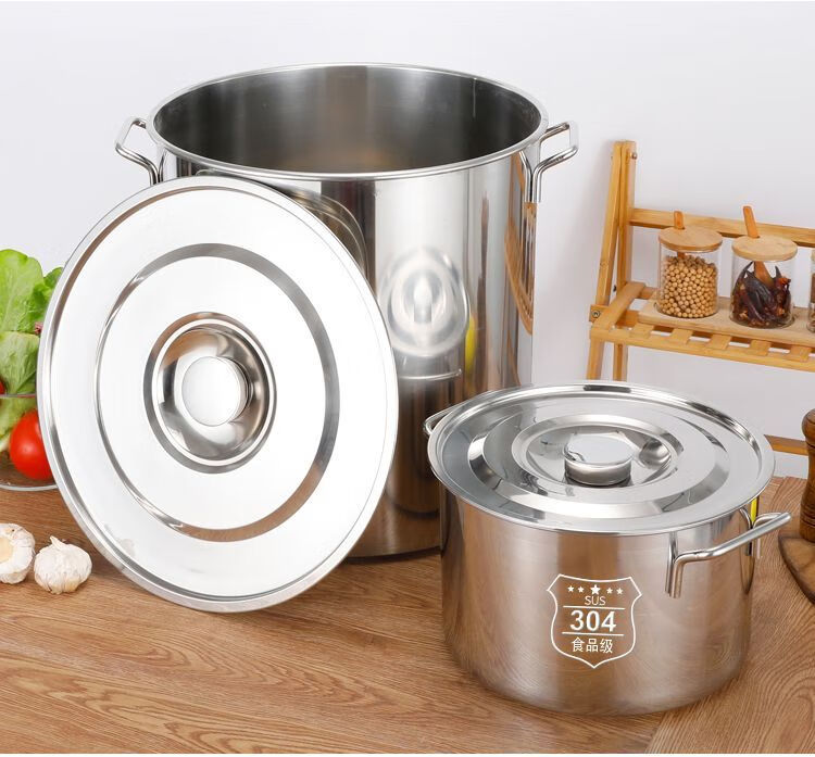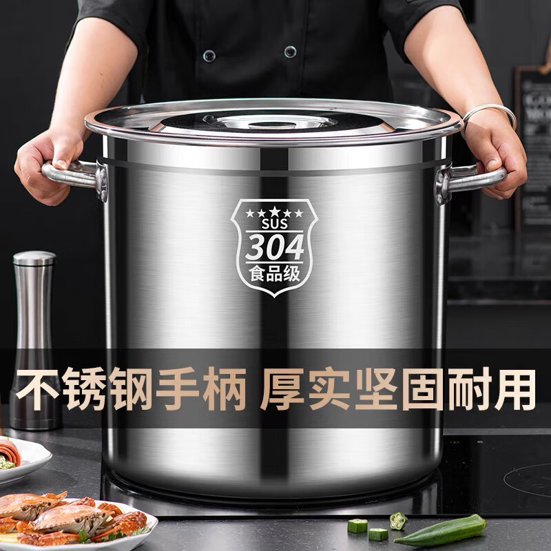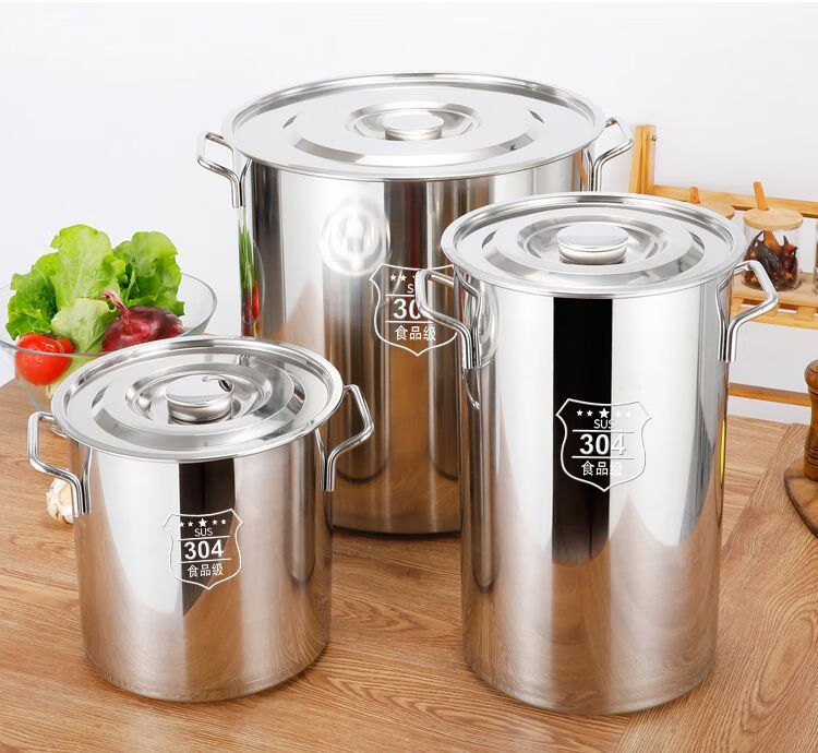Original price restored after grabbing 304 food grade stainless steel soup bucket with lid, rice bucket, water storage bucket, oil bucket container, additional purchase of 30,000+, diameter 30 cm, height 30 cm