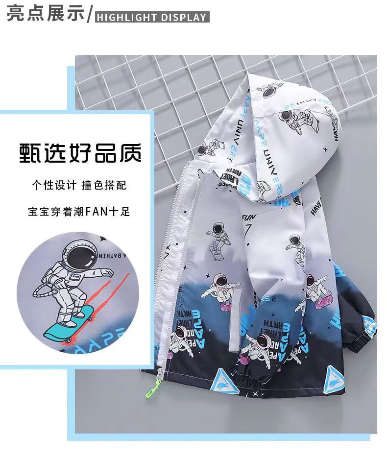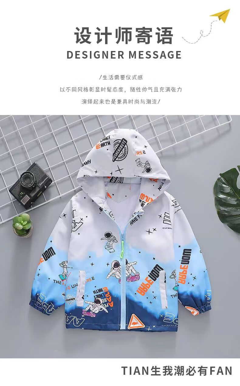 Disney Children's Jackets Spring and Autumn Boys' Windbreakers Baby Boys' Charge Jackets Autumn Boys 2024 New Children's Autumn Clothes Light Blue Astronaut Windbreaker 130