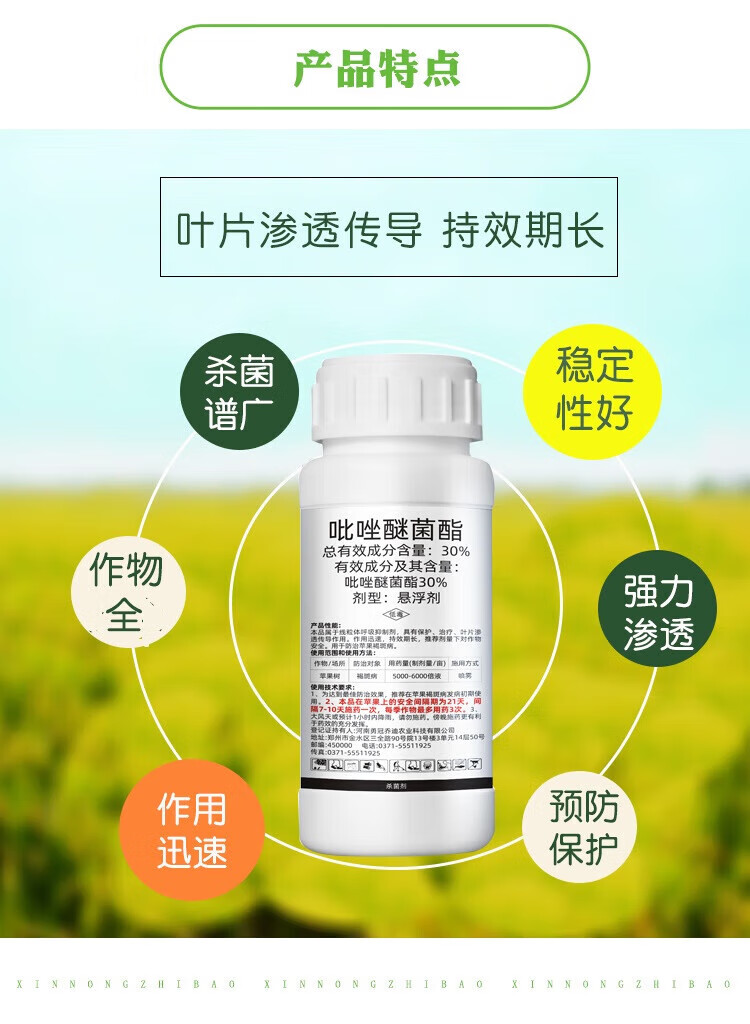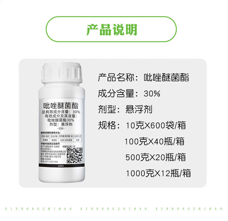30% pyraclostrobin resin, powdery mildew, downy mildew, brown spot, anthracnose, early blight, scab, rust 1000 500g (full box of 20 bottles)