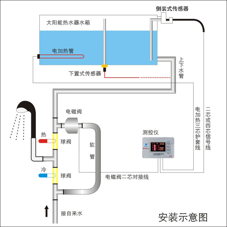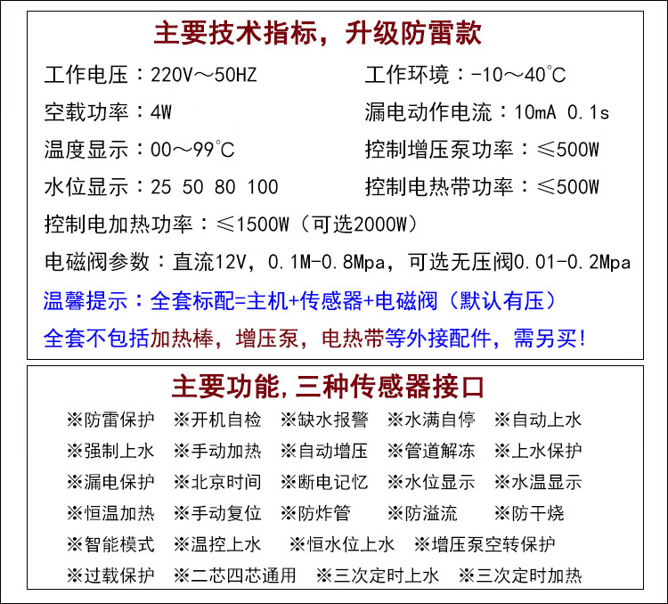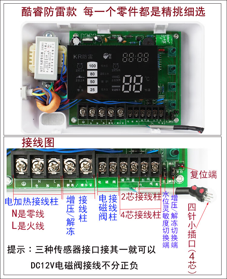 Solar water heater controller water temperature and level display universal intelligent measurement and control instrument automatic water supply instrument 2000W complete set (4-core silicon steel belt 20 meters wire