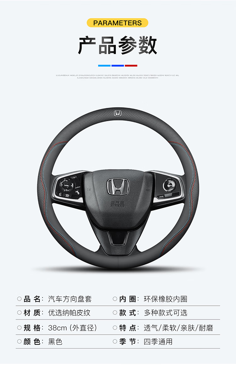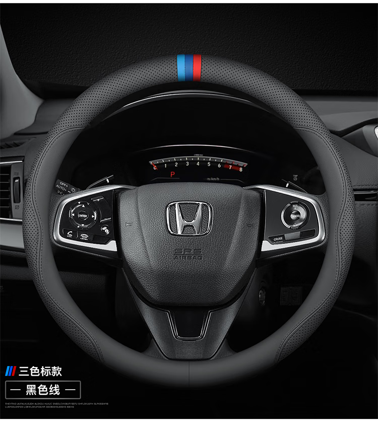 Honda steering wheel cover genuine leather Accord CRV Haoying Civic P7 Odyssey HRV Jed handlebar cover ultra-thin round ultra-thin model black line without label