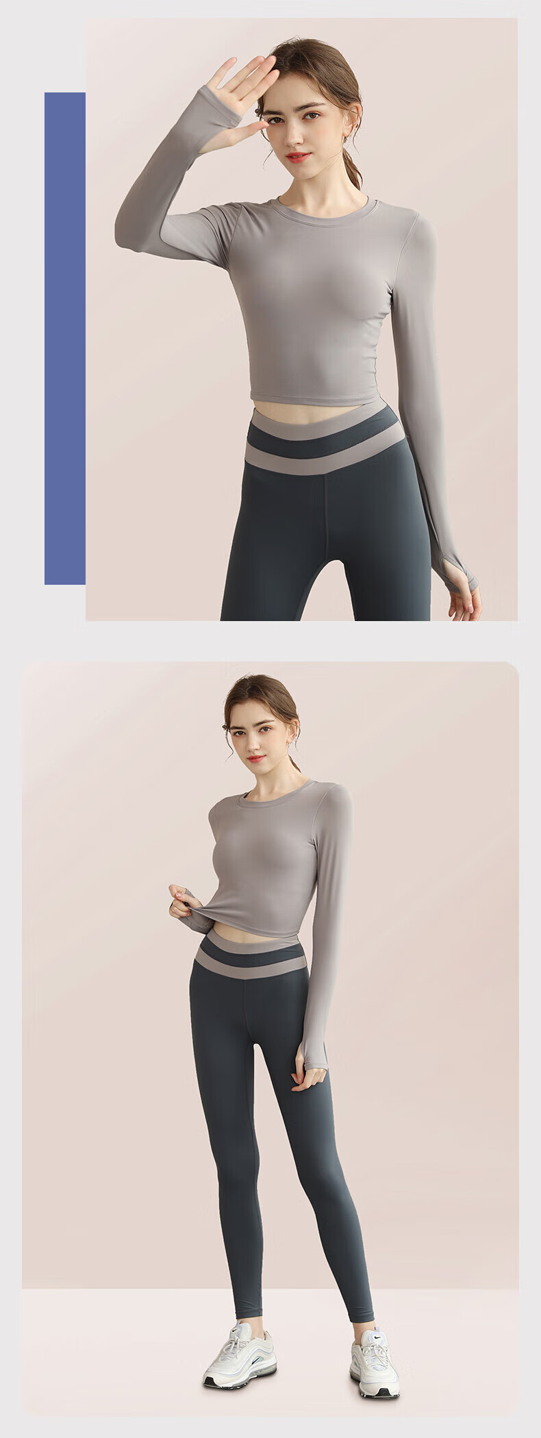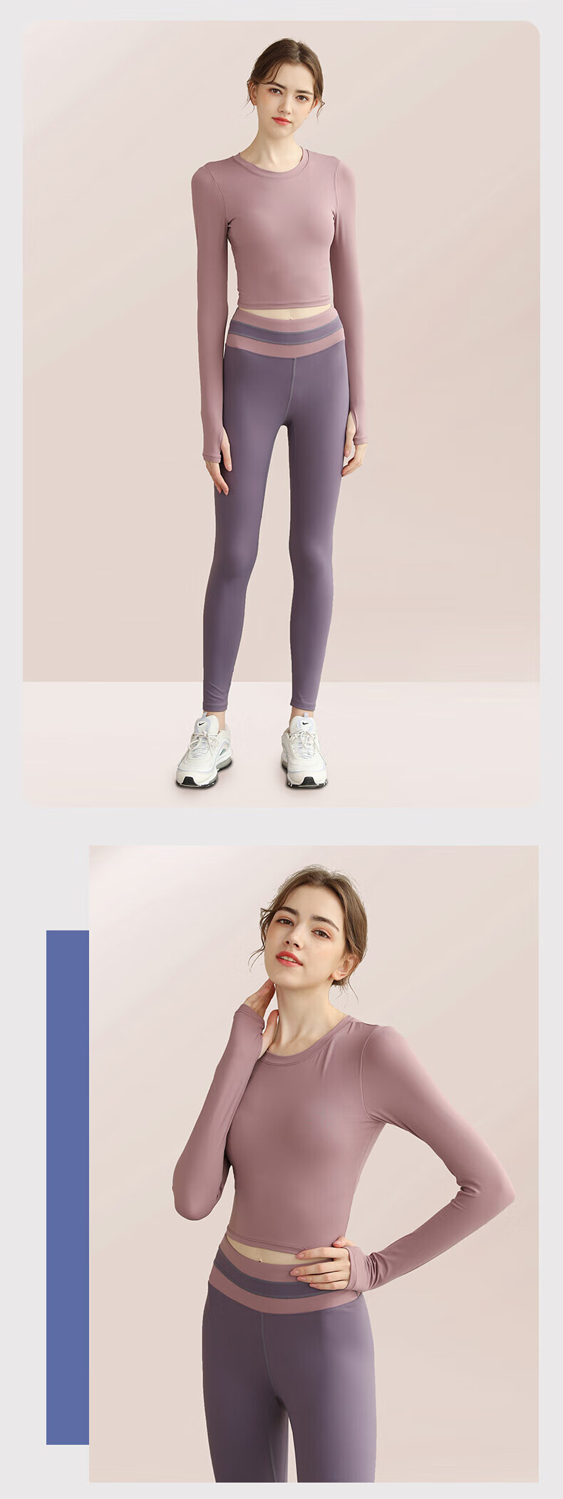 LULUUVTTOH Yoga Wear Suit Women's Quick-Drying Pilates Gym Training Wear Running Sports High-Elastic Butt Lifting Leggings S853 Taro Purple Long Sleeve L