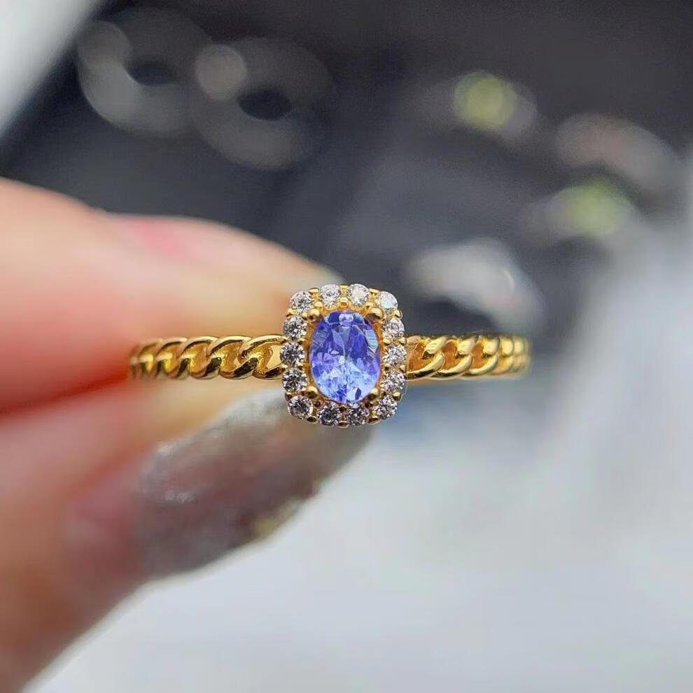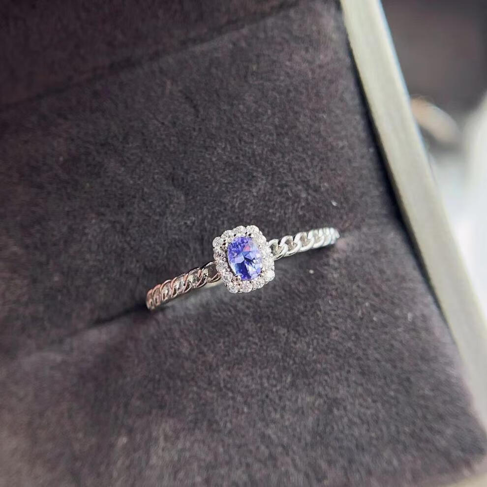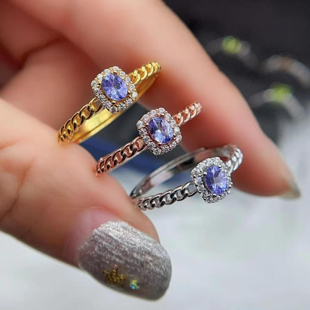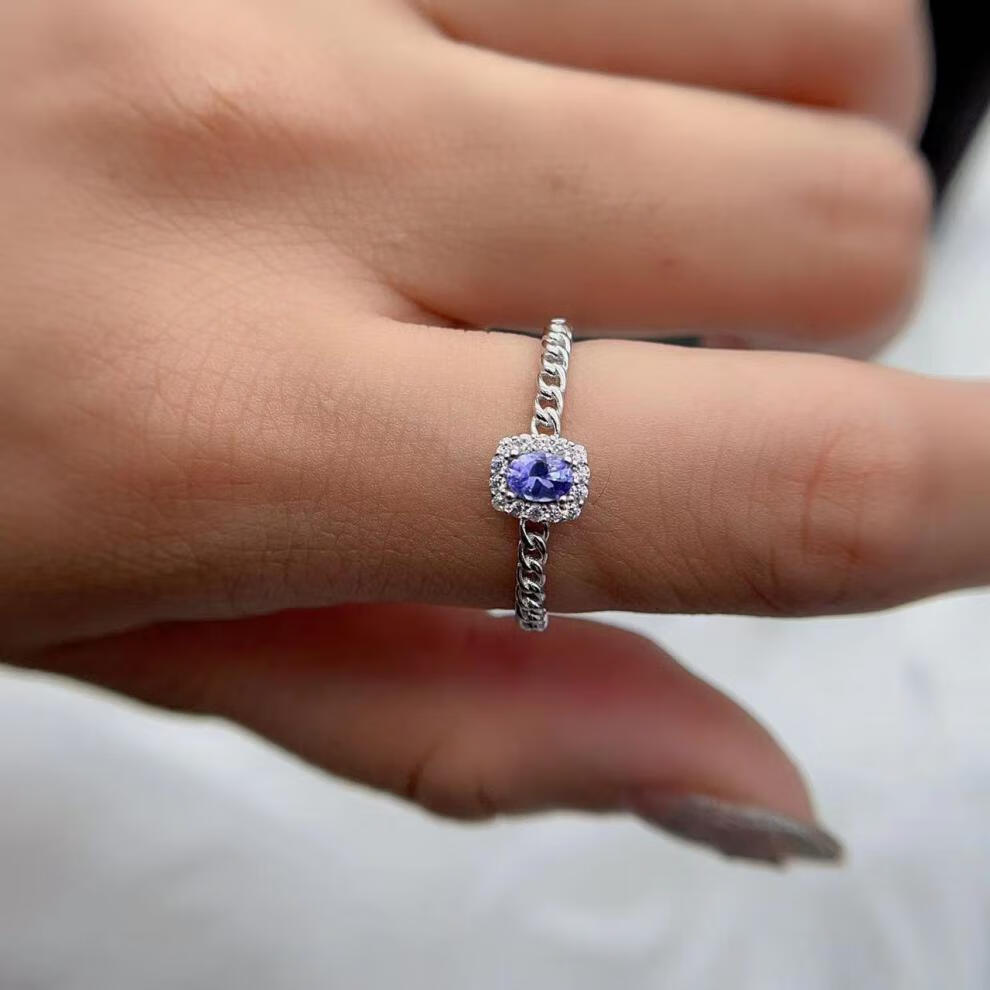 Qingmeng S925 sterling silver inlaid tanzanite ring, everyday versatile fine workmanship silver jewelry, light luxury natural gemstone entry-level model for men and women, tanzanite ring rose gold