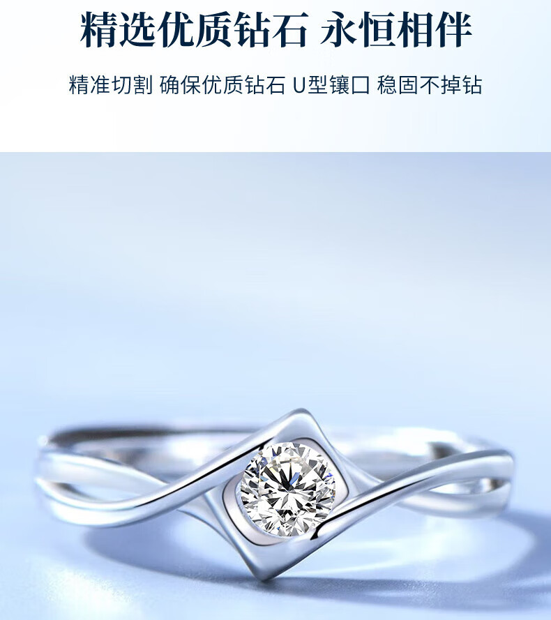 China Gold (CHINA GOLD) Platinum Diamond Ring Engagement Proposal Ring Open Women's Ring Birthday Gift for Wife and Girlfriend Platinum Kiss Diamond Ring